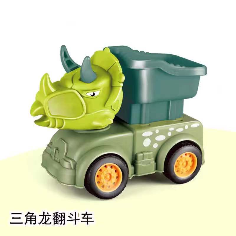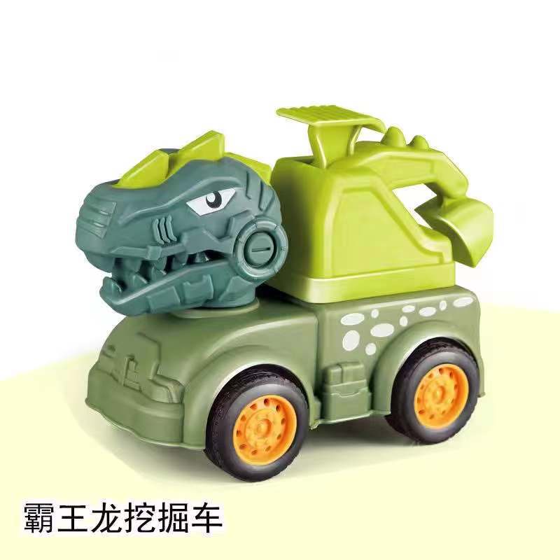 跨境恐龙按压回力工程车霸王龙运输车挖掘机惯性男孩地摊玩具批发