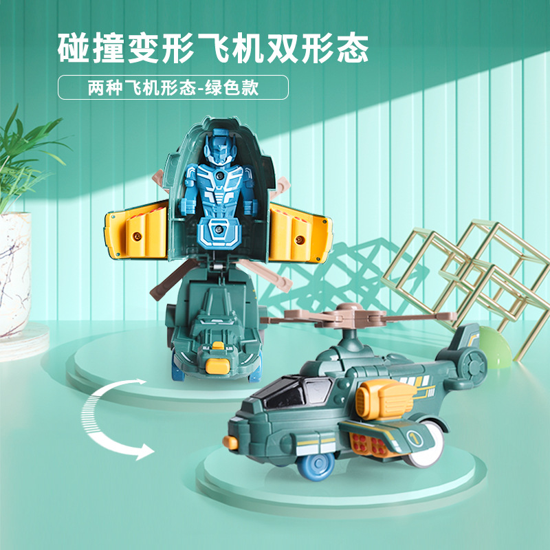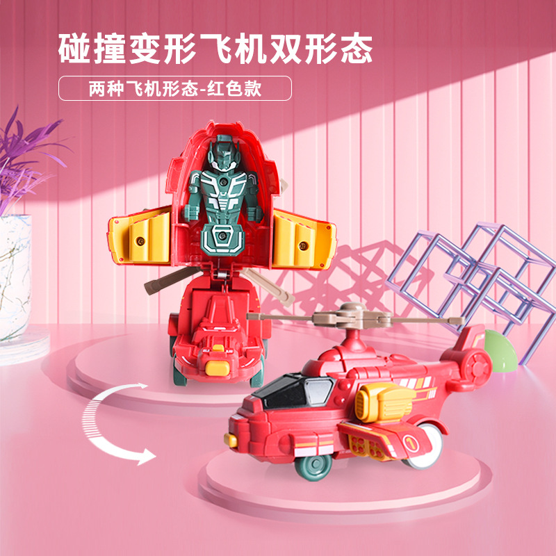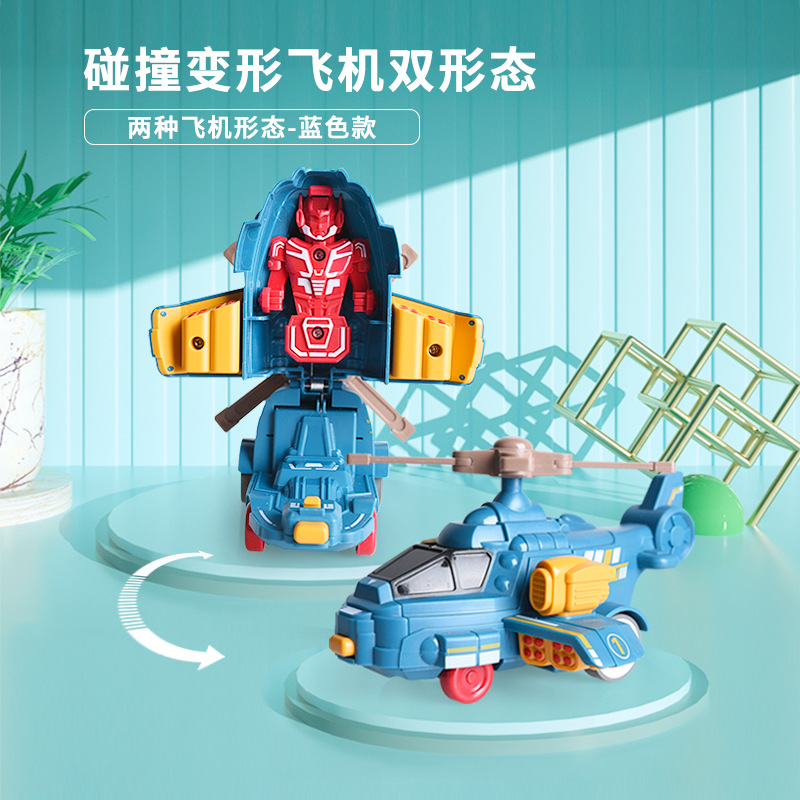 抖音变形飞机儿童玩具直升机碰撞击变身机器人惯性滑行男女孩