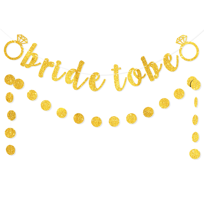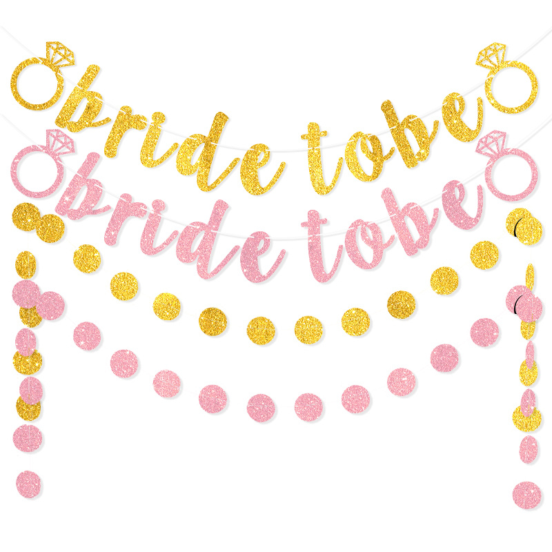 婚庆婚礼横幅玫瑰金 金色镂空钻戒 bride to be闪粉拉花 圆片串旗