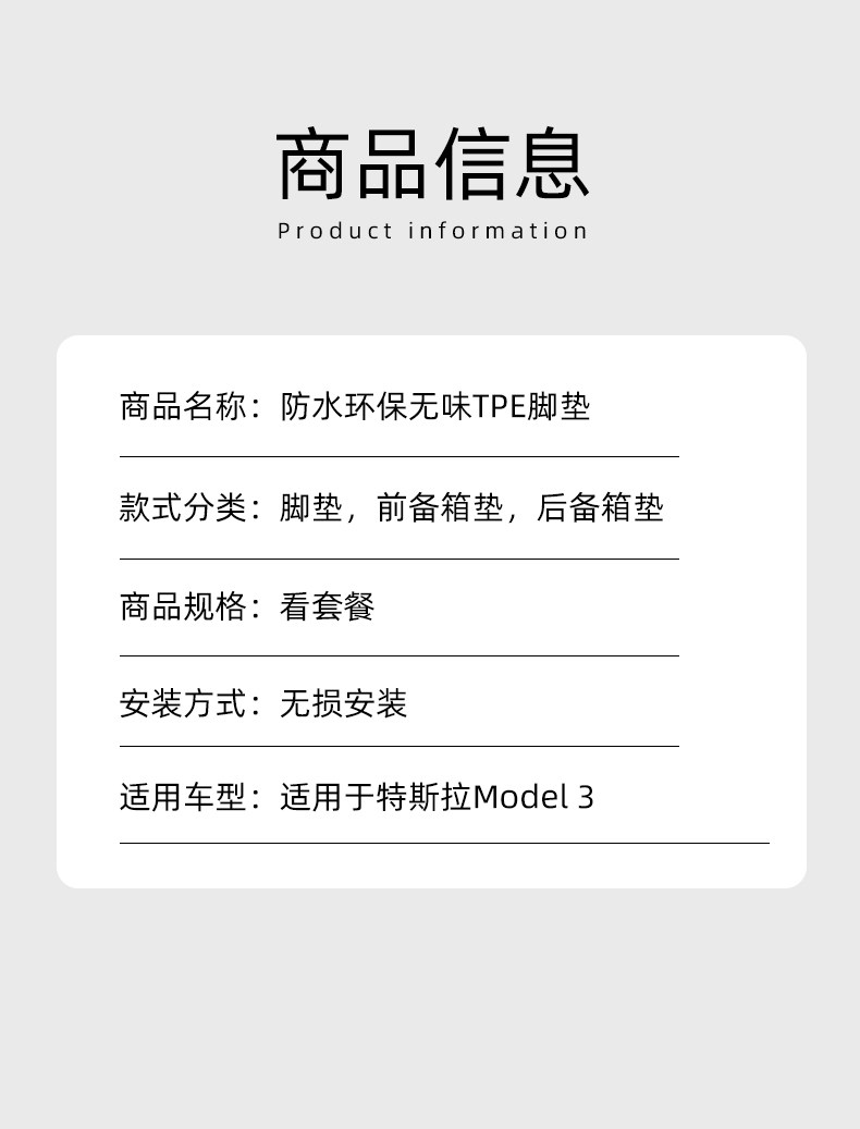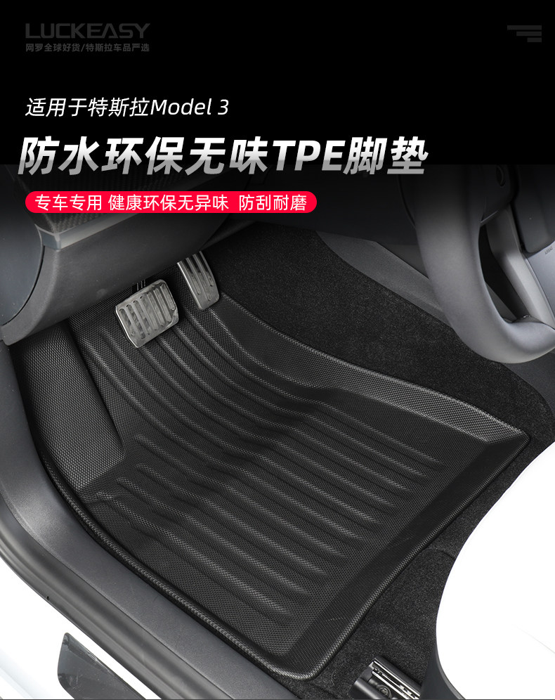 适用于18-21款 特斯拉model 3脚垫TPE环保防水无气味耐磨全天候垫