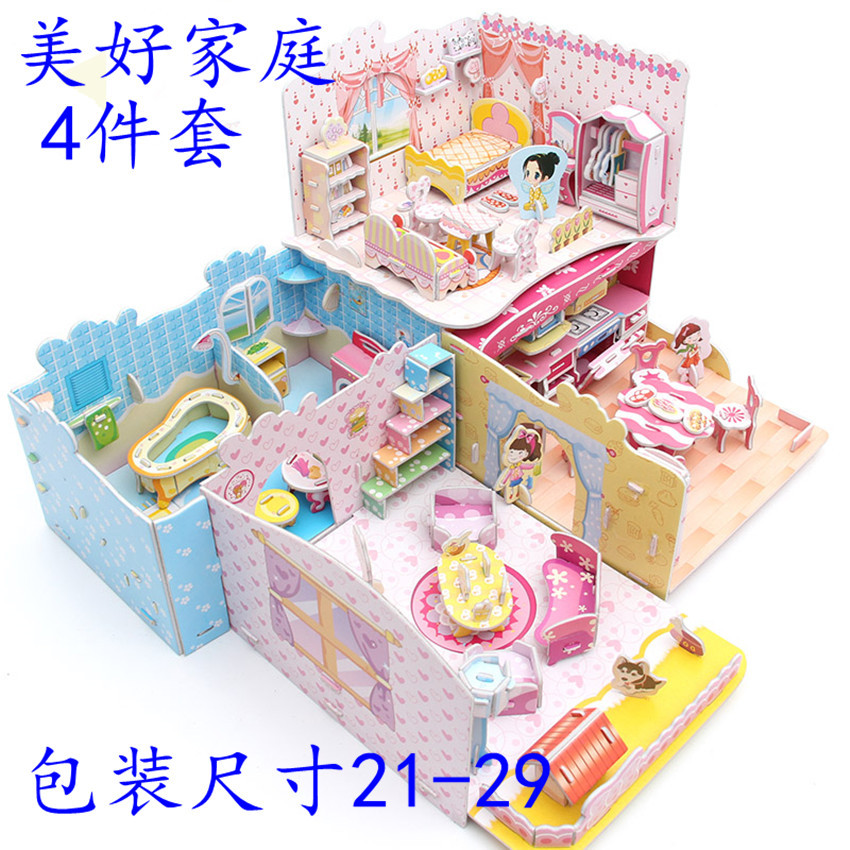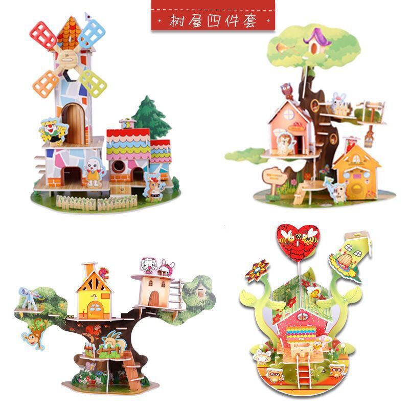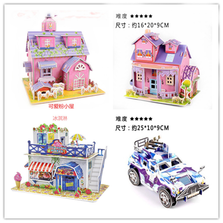 3D立体拼图地摊热卖儿童益智玩具手工纸质模型手工组装玩具拼图