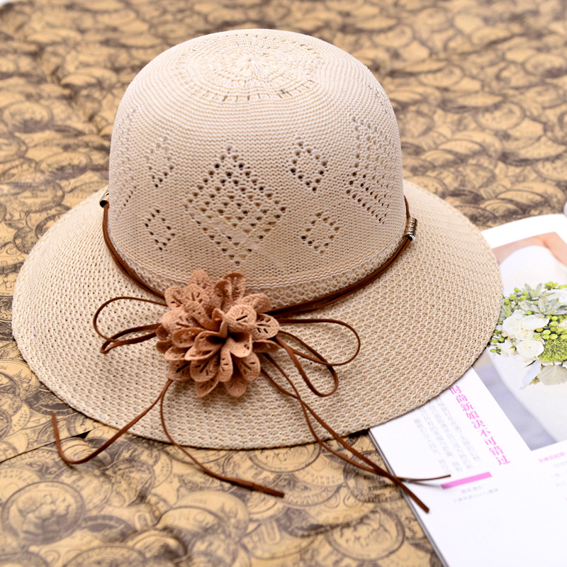 新款夏季女士户外遮阳花朵草帽防晒太阳帽子夏天沙滩帽时尚凉帽