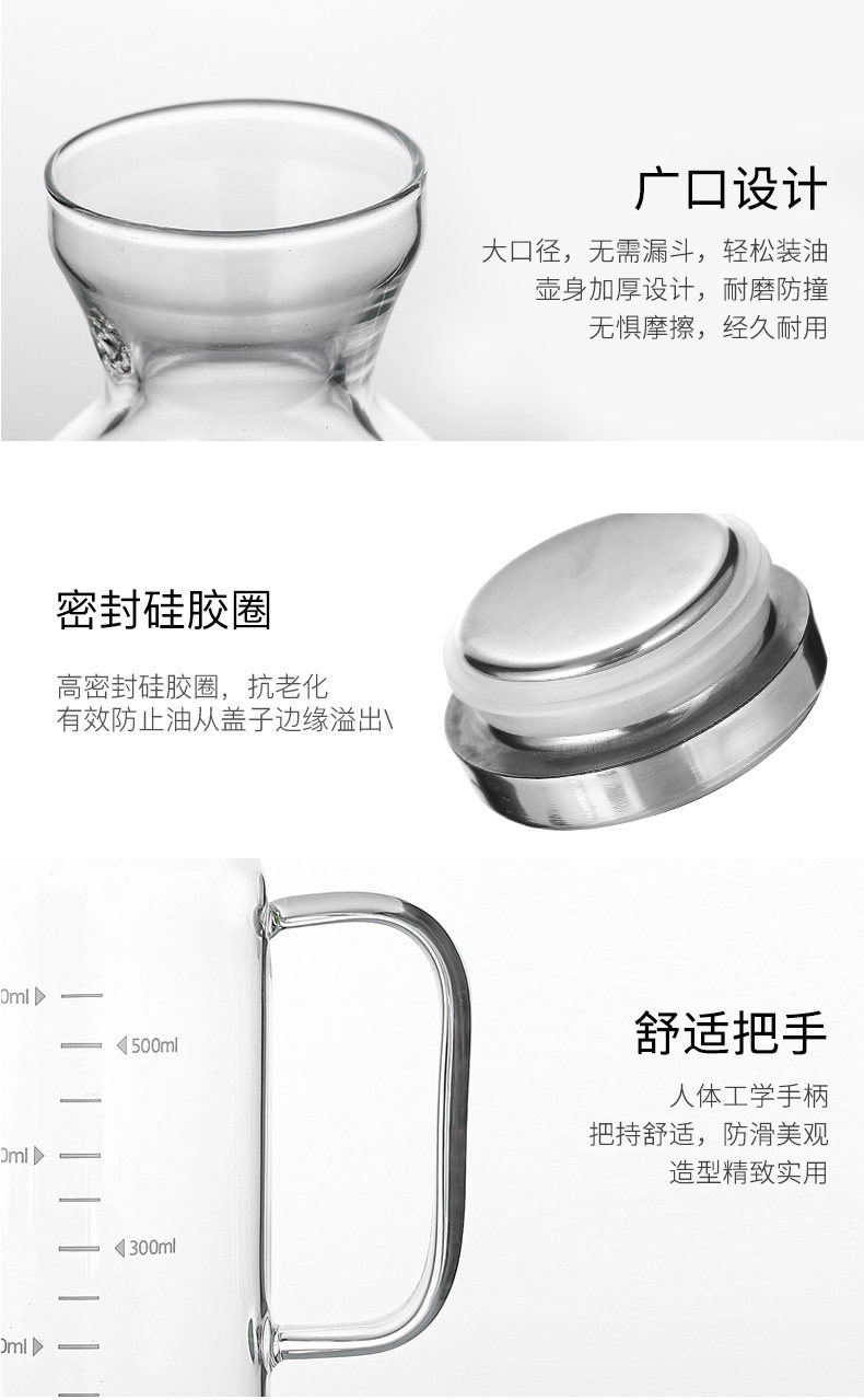 油壶玻璃防漏油瓶不挂油油罐厨房家用酱油醋调料瓶不锈钢醋壶醋瓶