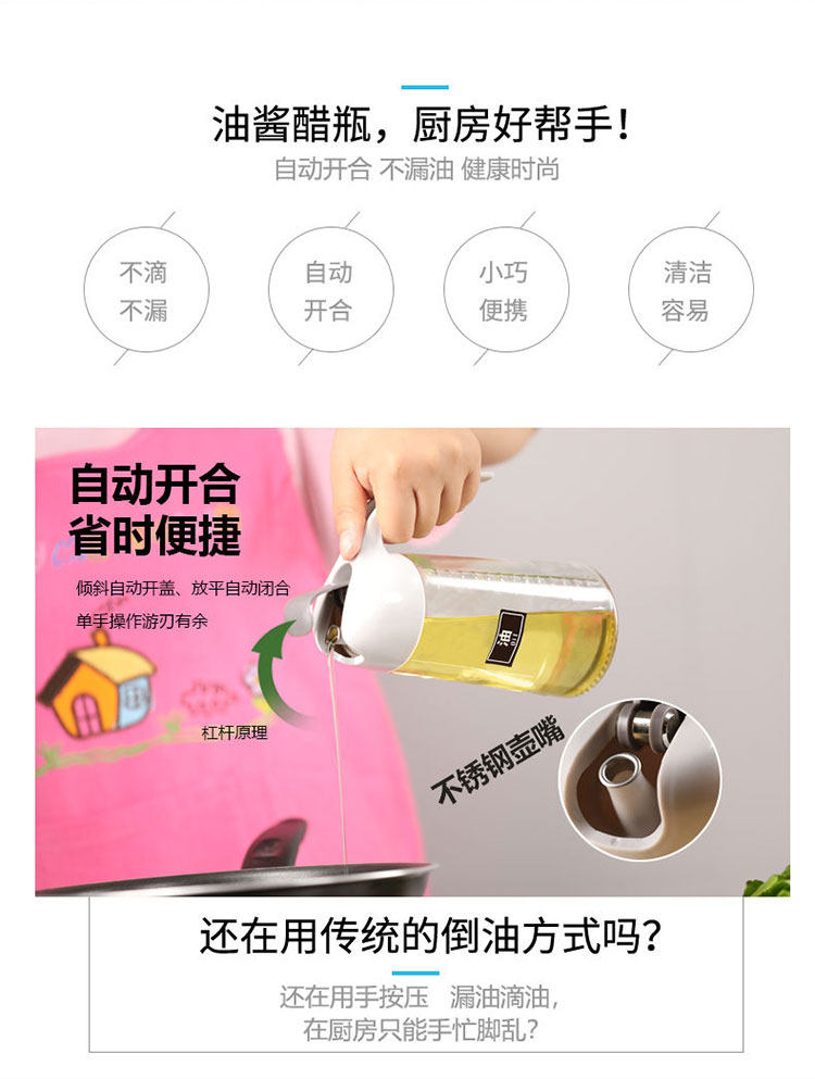 家用小油壶自动开合不挂油日式大容量酱醋瓶罐调味瓶玻璃厨房