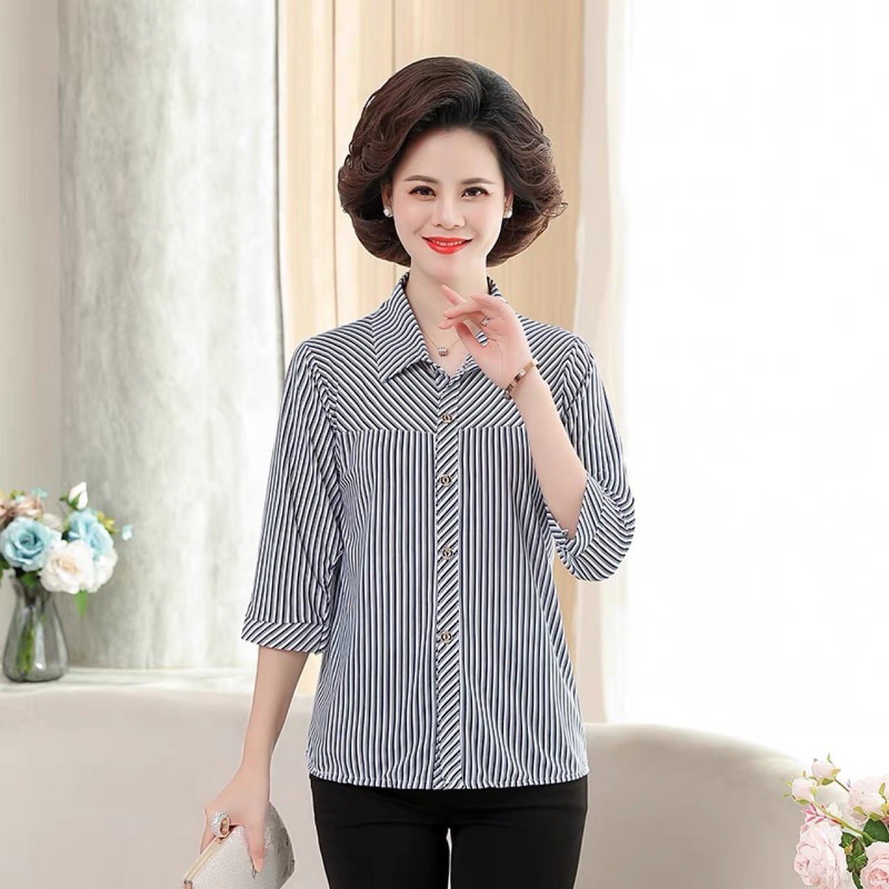 2022中年妈妈装夏装衬衫女中袖上衣洋气40岁50中老年姥姥衣服