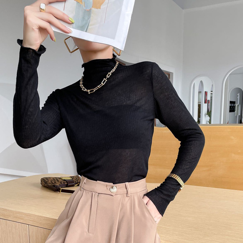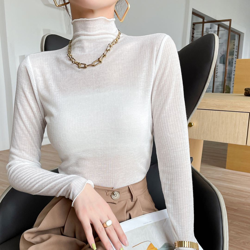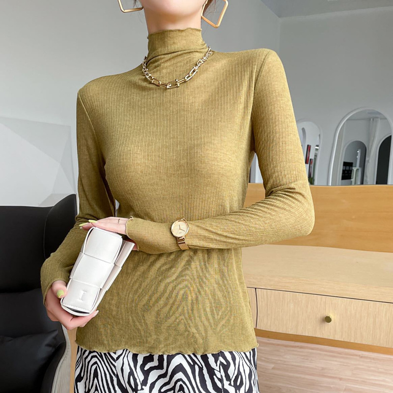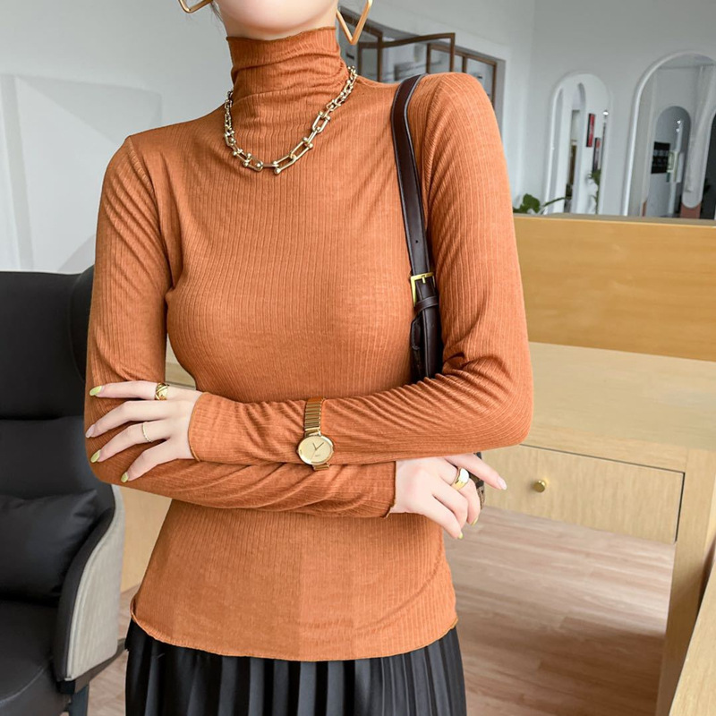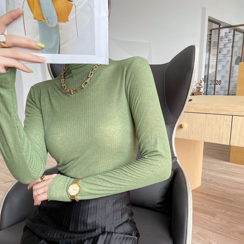 天丝亲肤衣纯色韩版百搭显瘦打底衫高弹舒适堆堆领软软衣面膜上衣