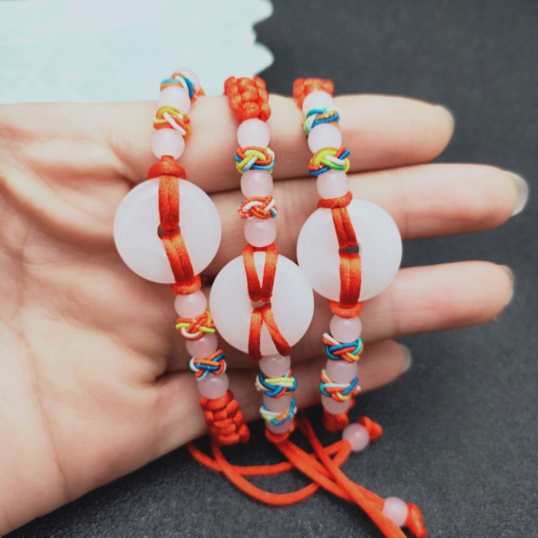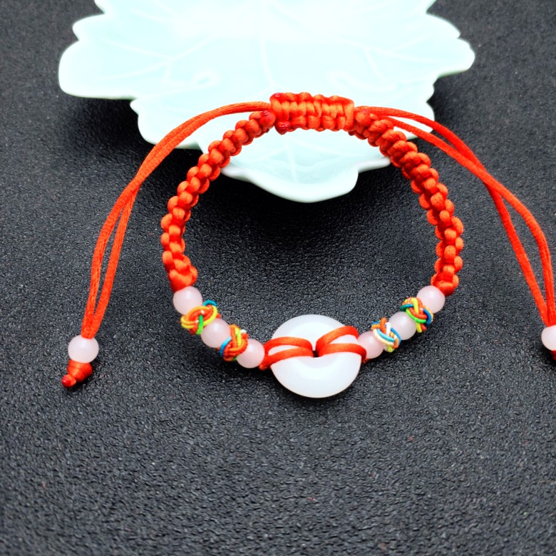 仿玉石平安扣民族风五彩红绳手链端午节红绳饰品情人节情侣礼品