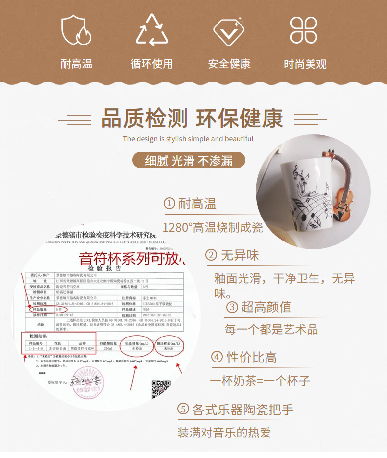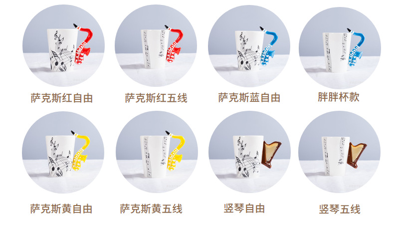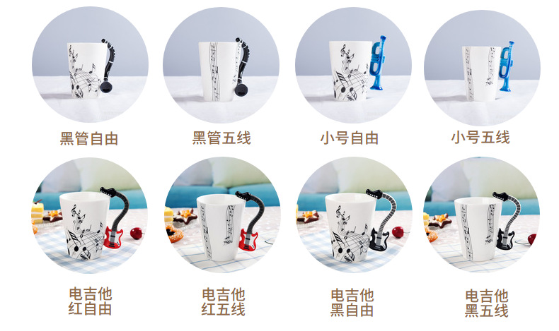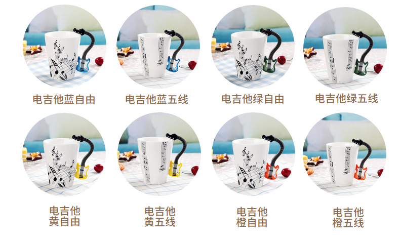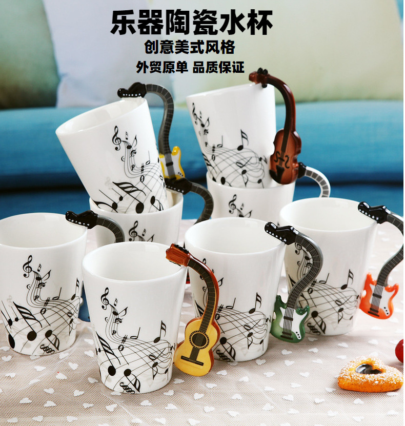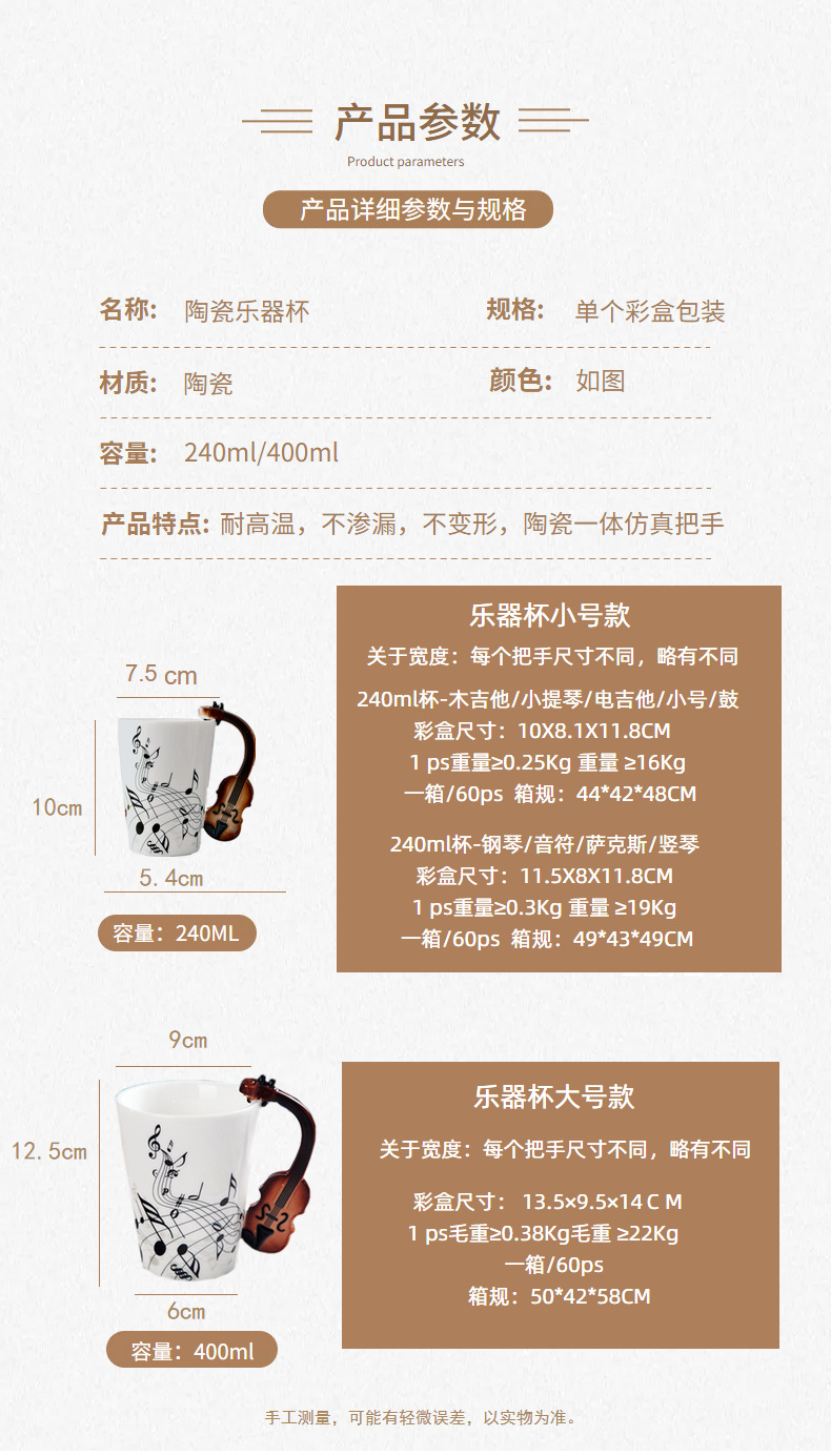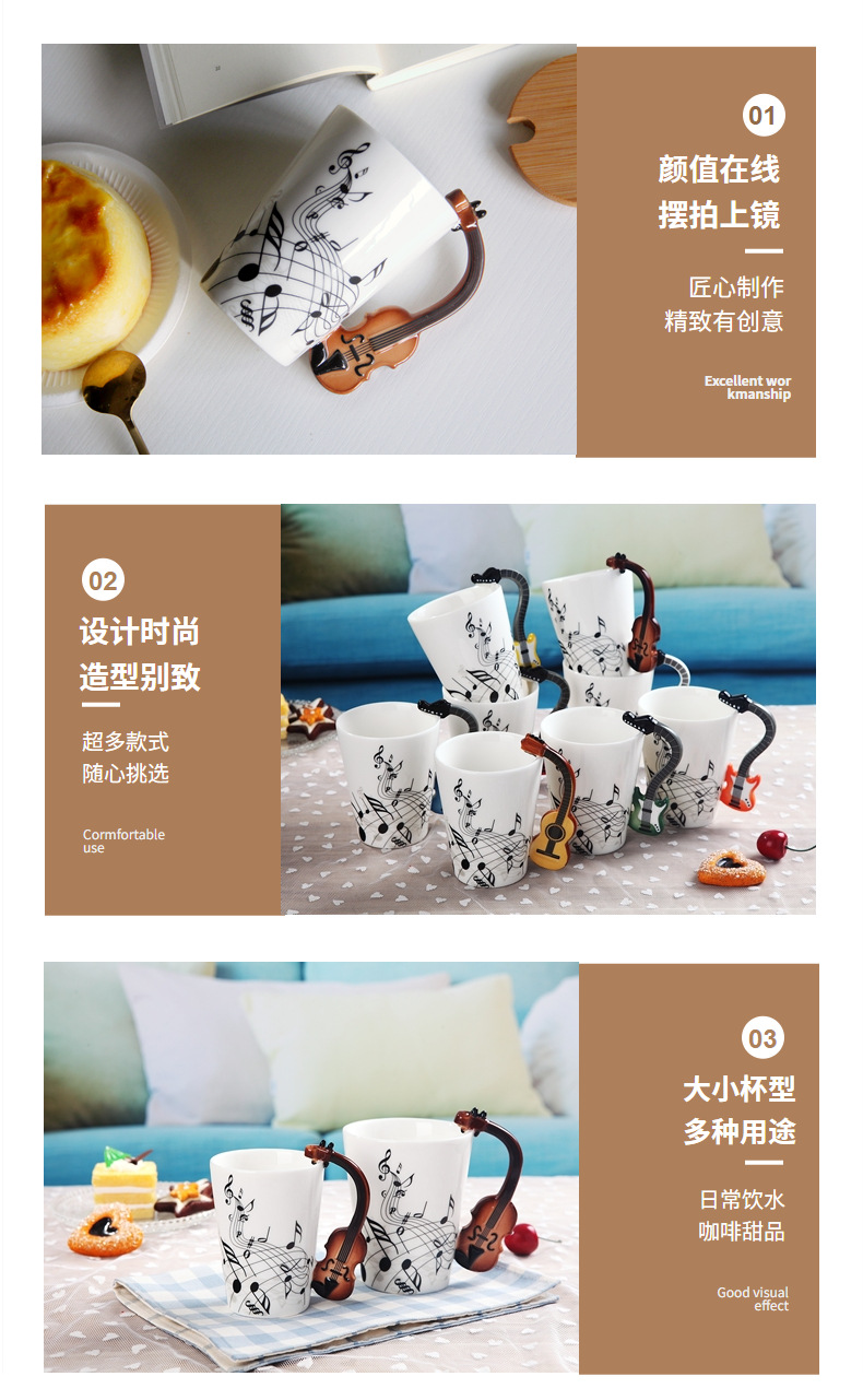 小提琴水杯创意乐器音乐杯音符跨境电商陶瓷马克杯400ml大杯