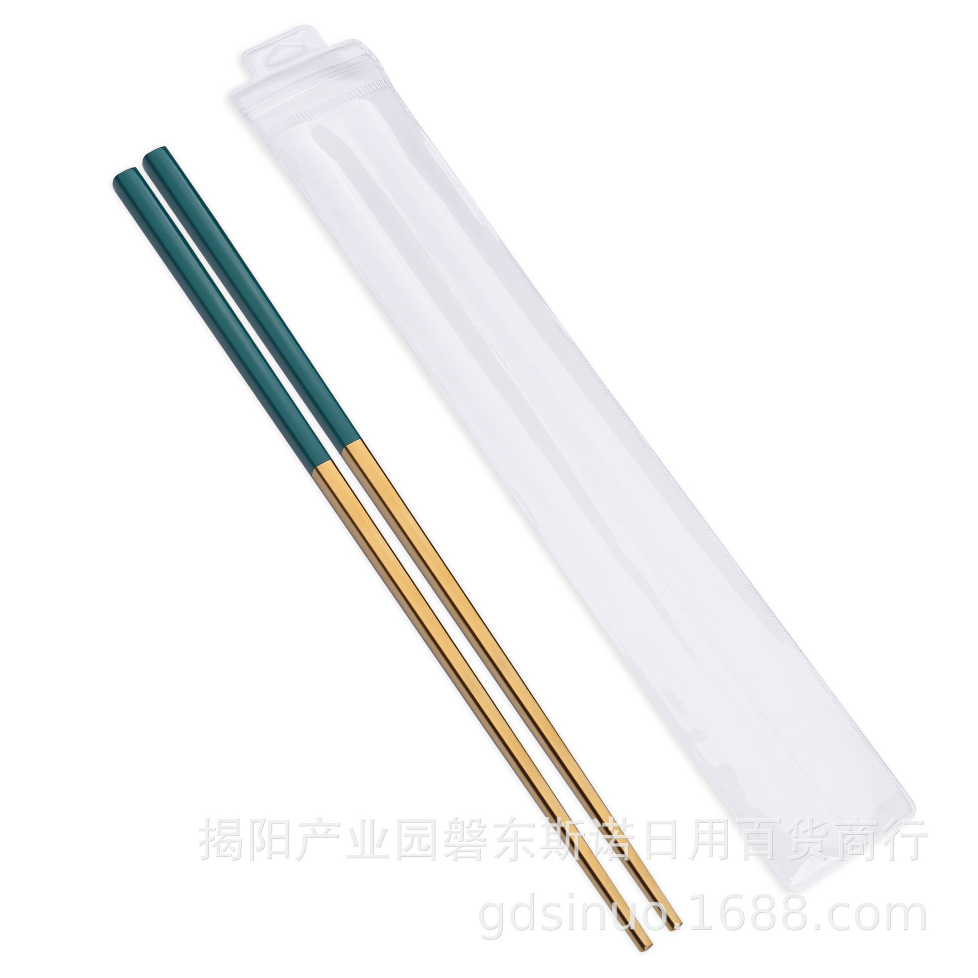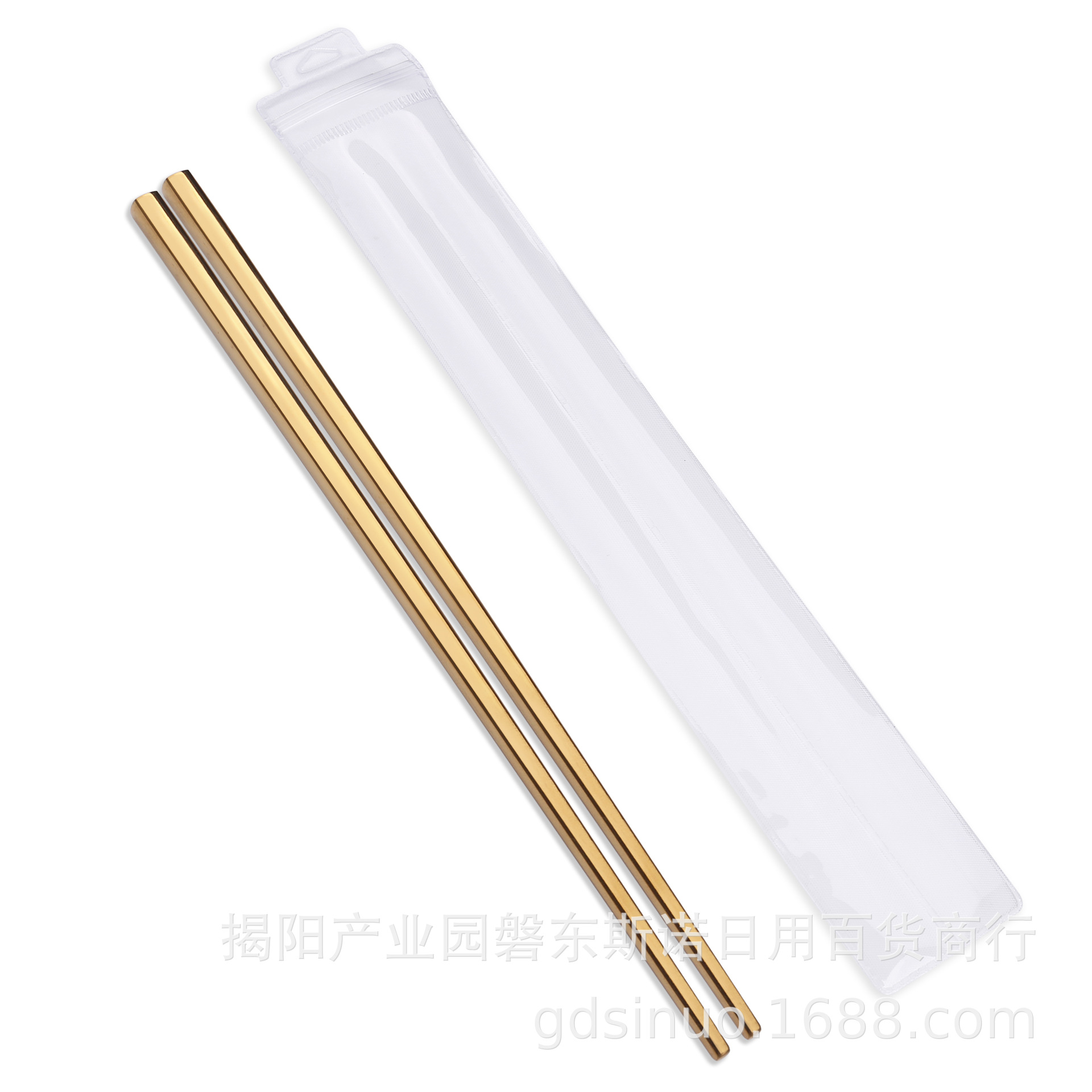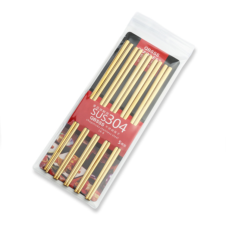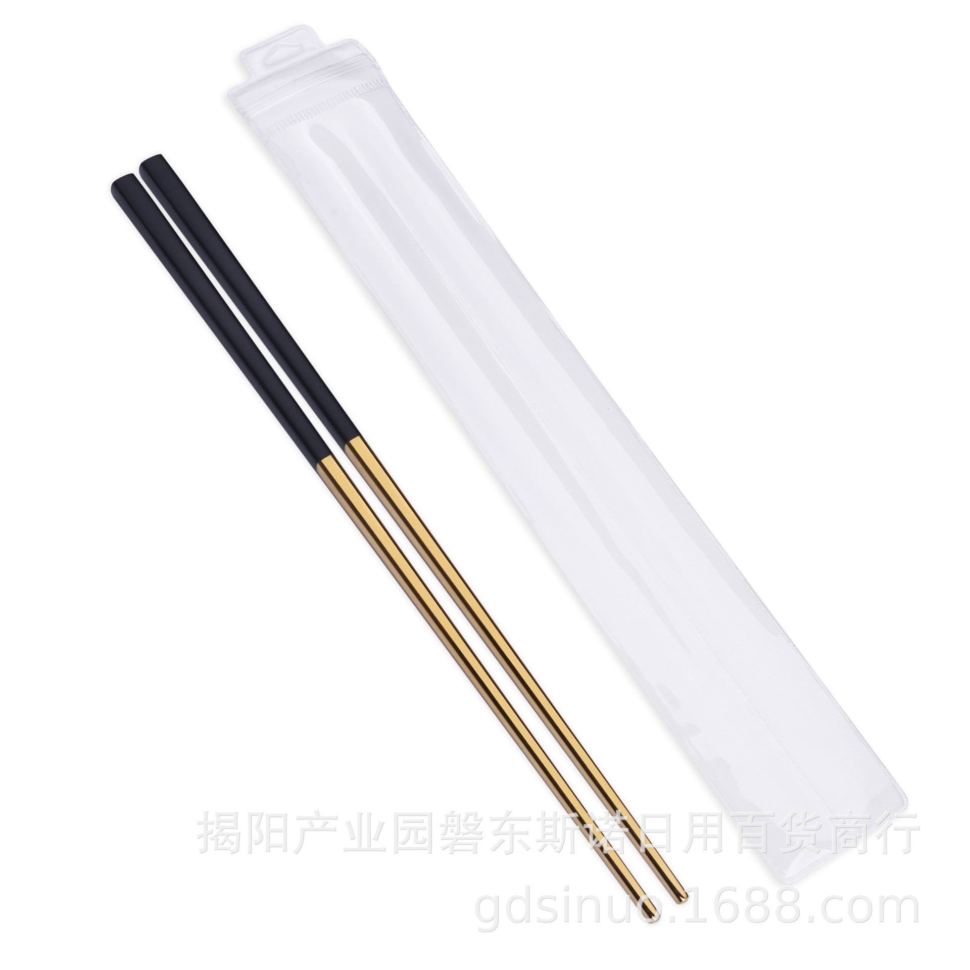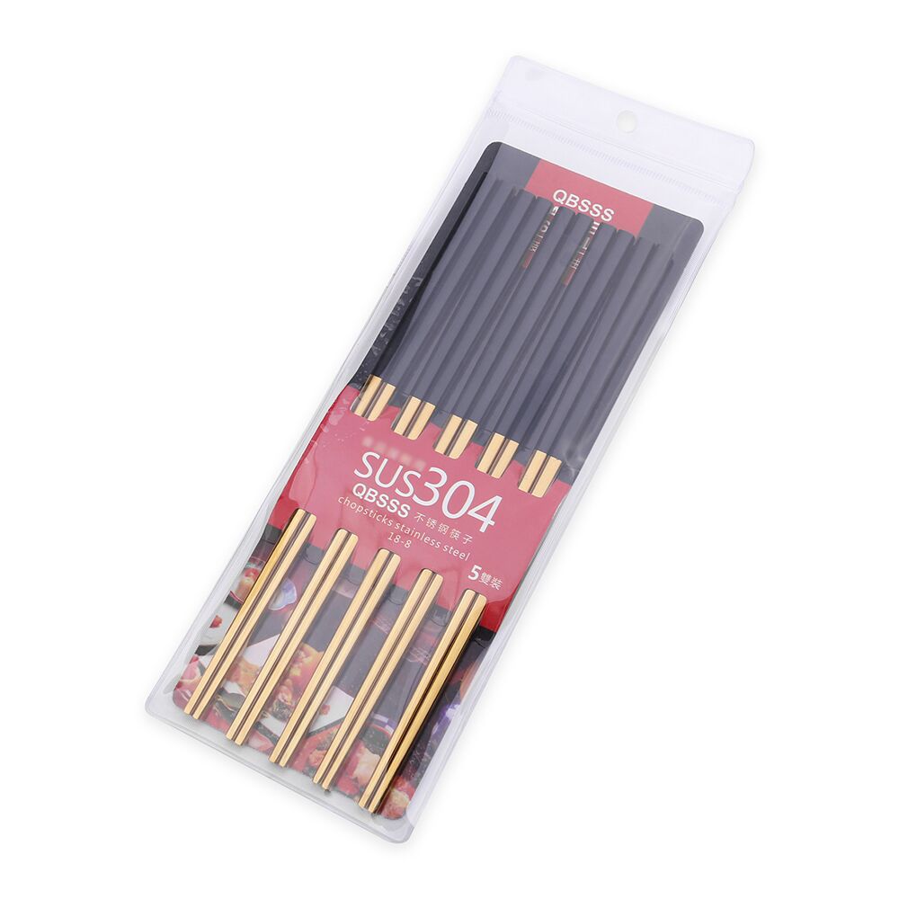 A 304不锈钢筷子 葡萄牙同款方形亮光防滑家用黑金筷套装礼品餐具