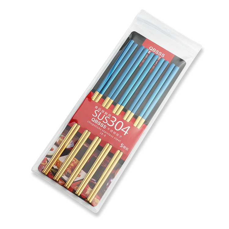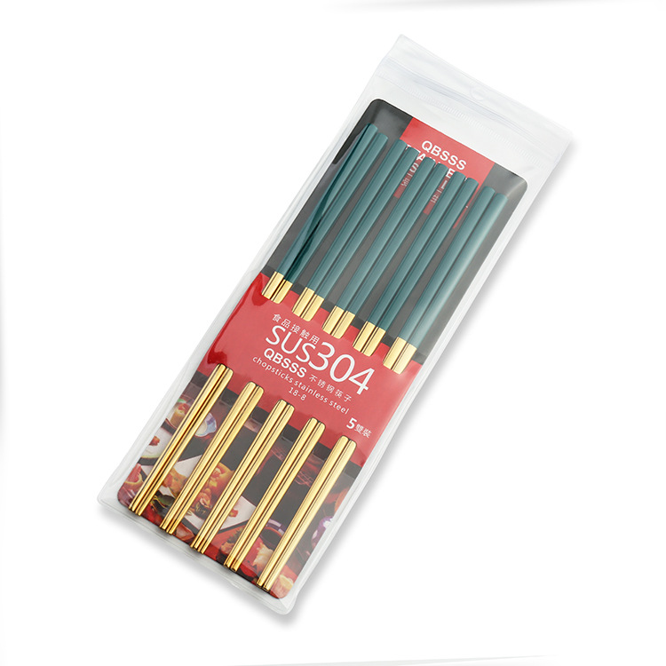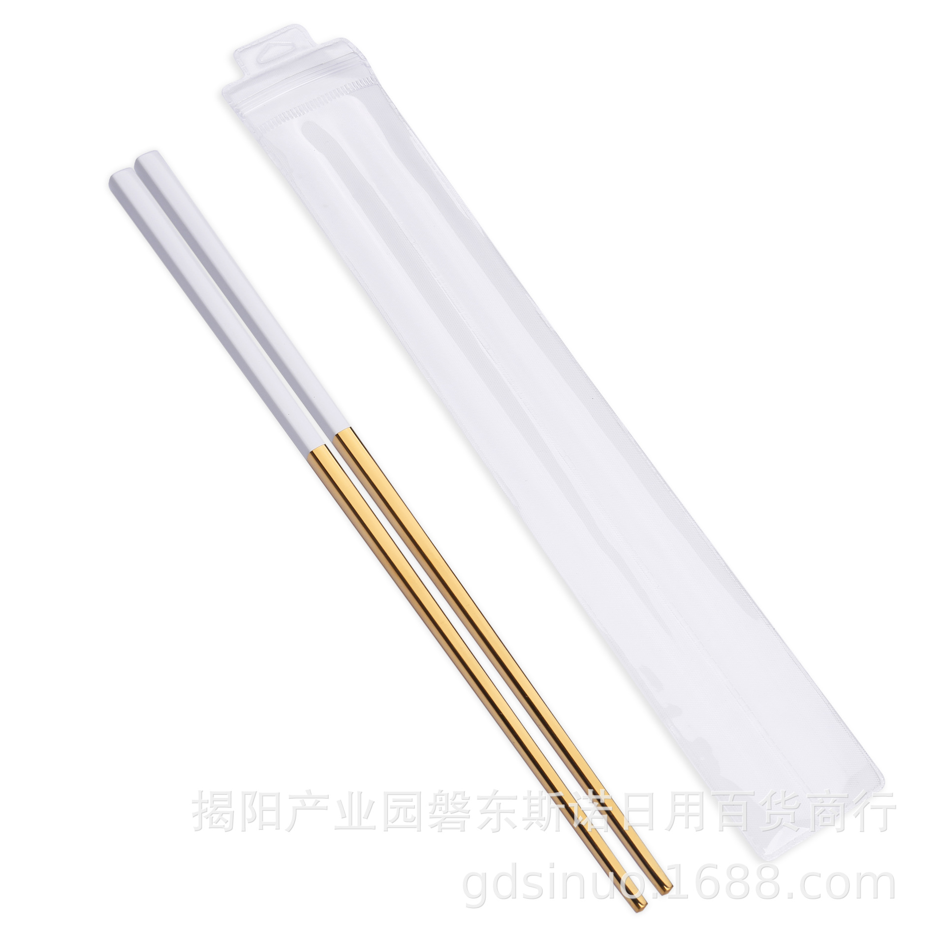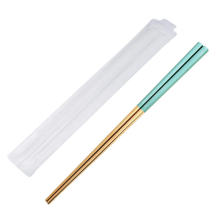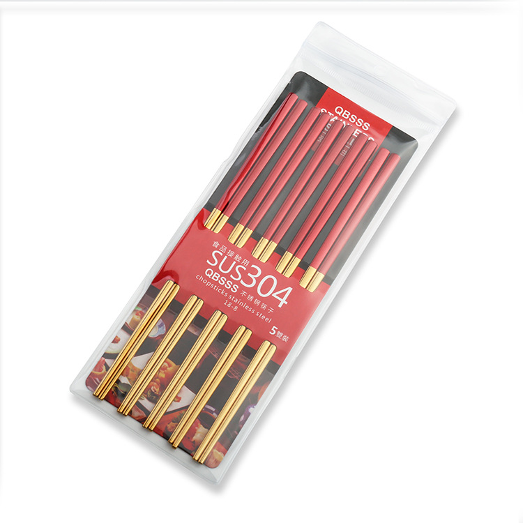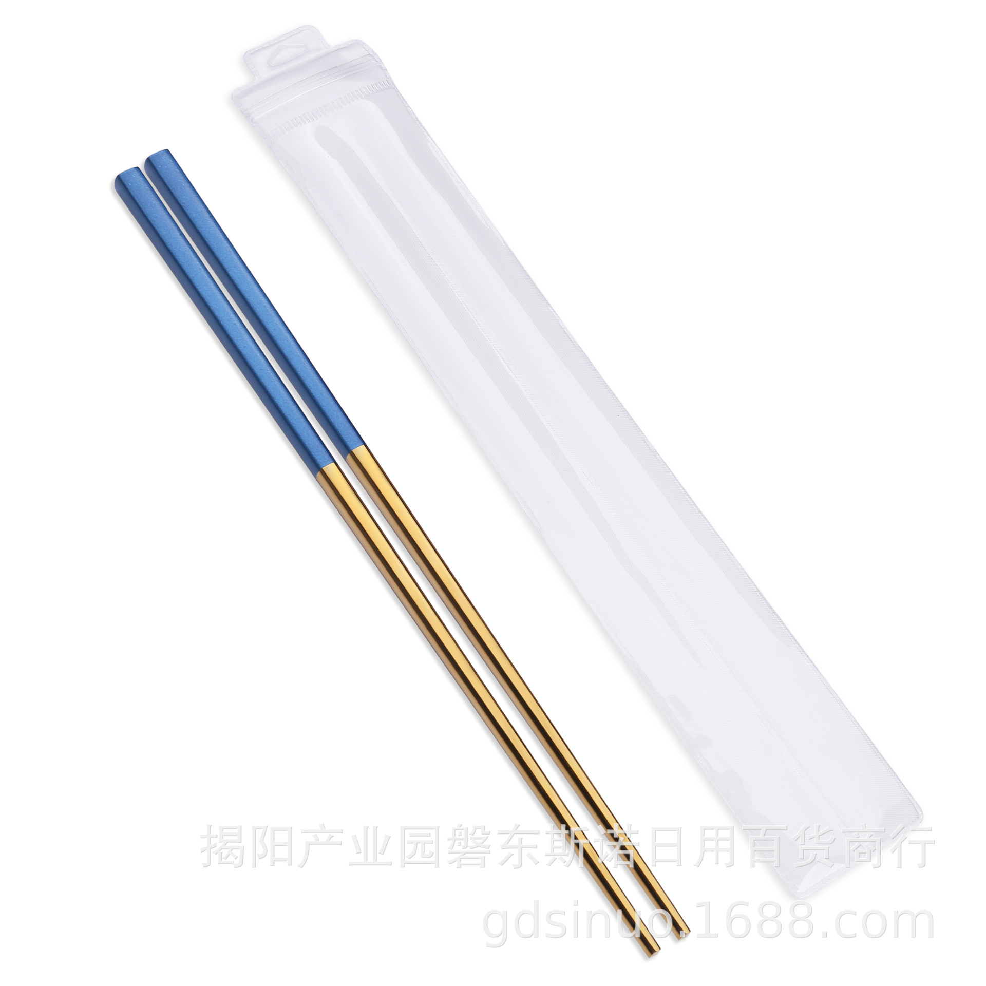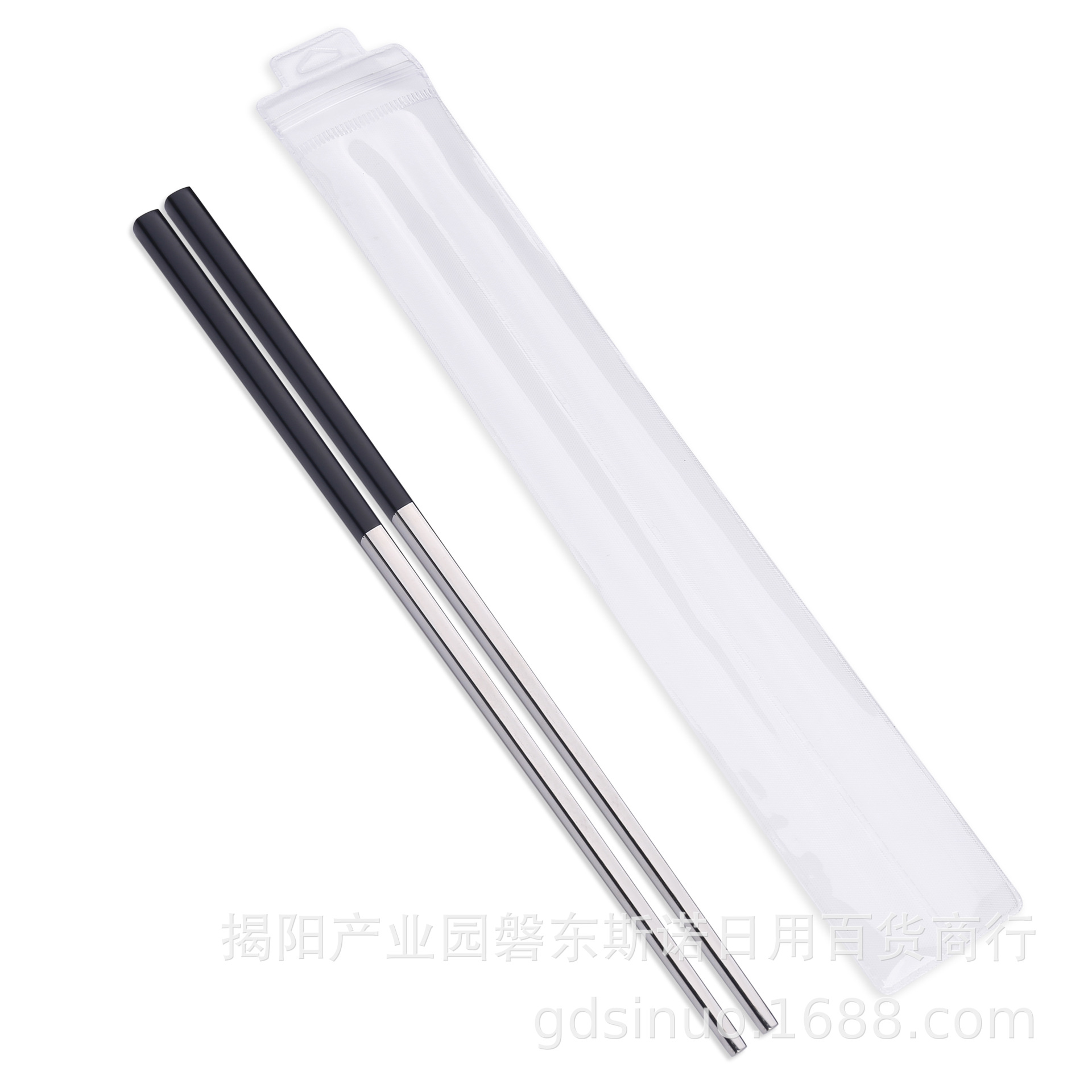 A 304不锈钢筷子 葡萄牙同款方形亮光防滑家用黑金筷套装礼品餐具