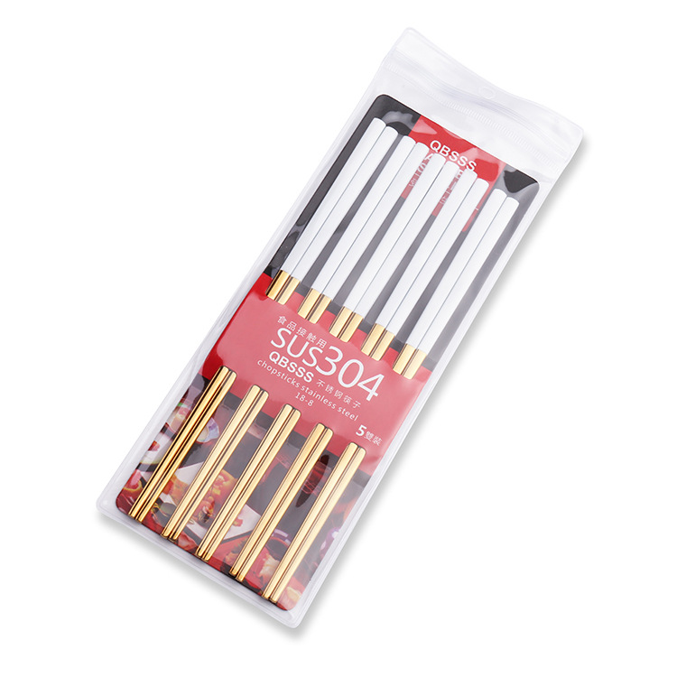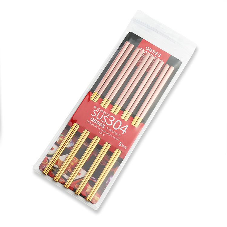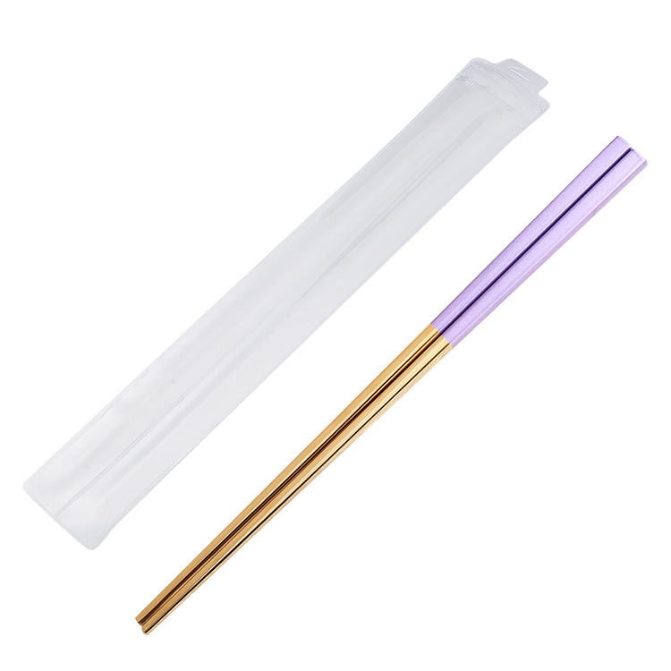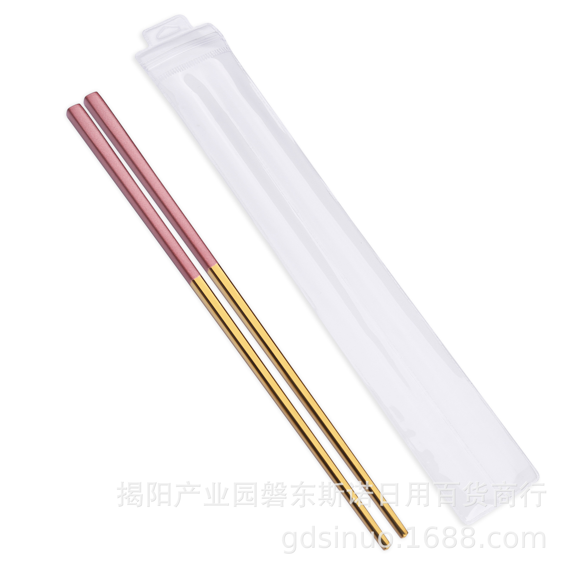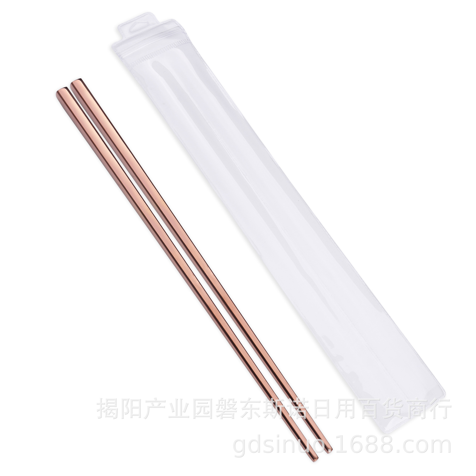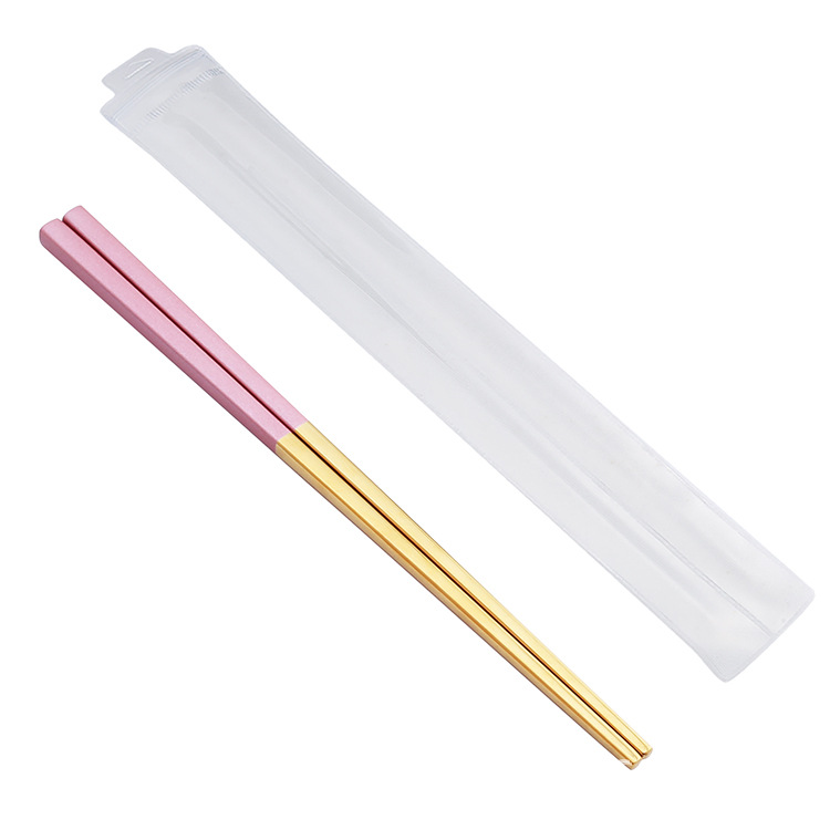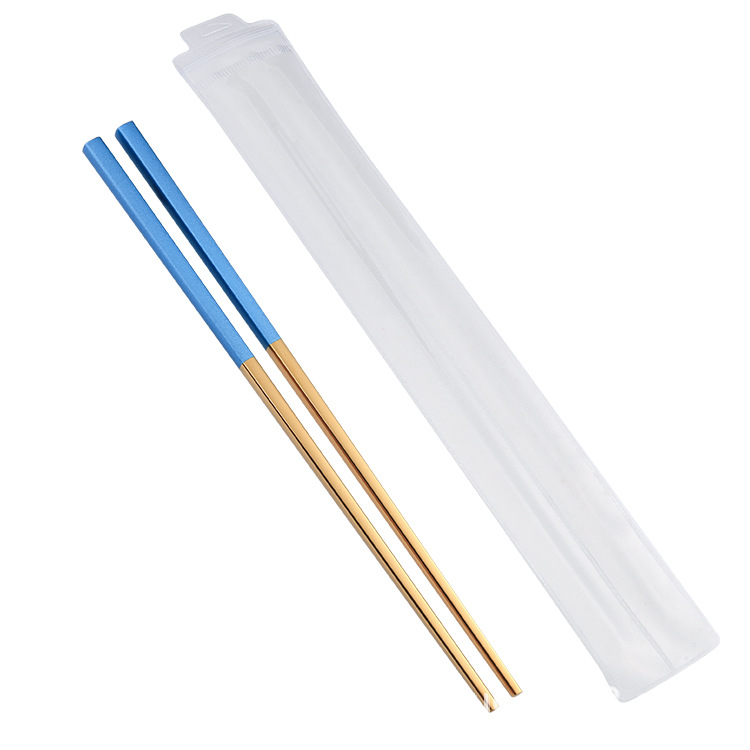 A 304不锈钢筷子 葡萄牙同款方形亮光防滑家用黑金筷套装礼品餐具