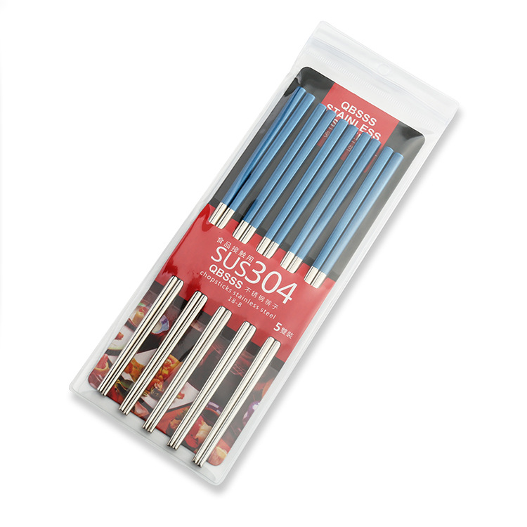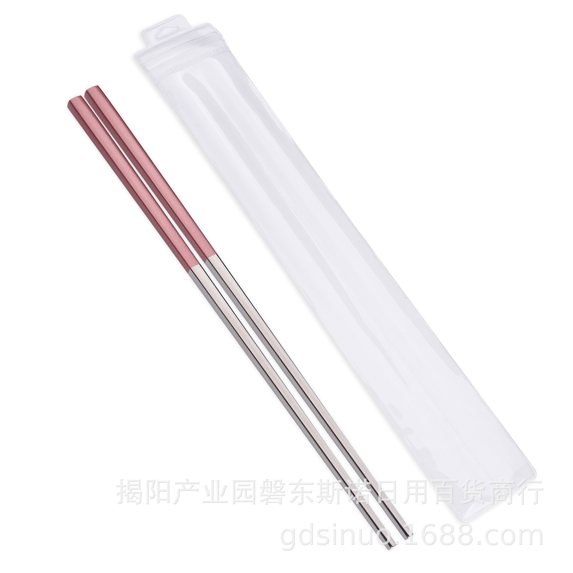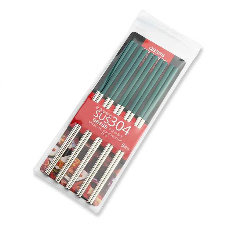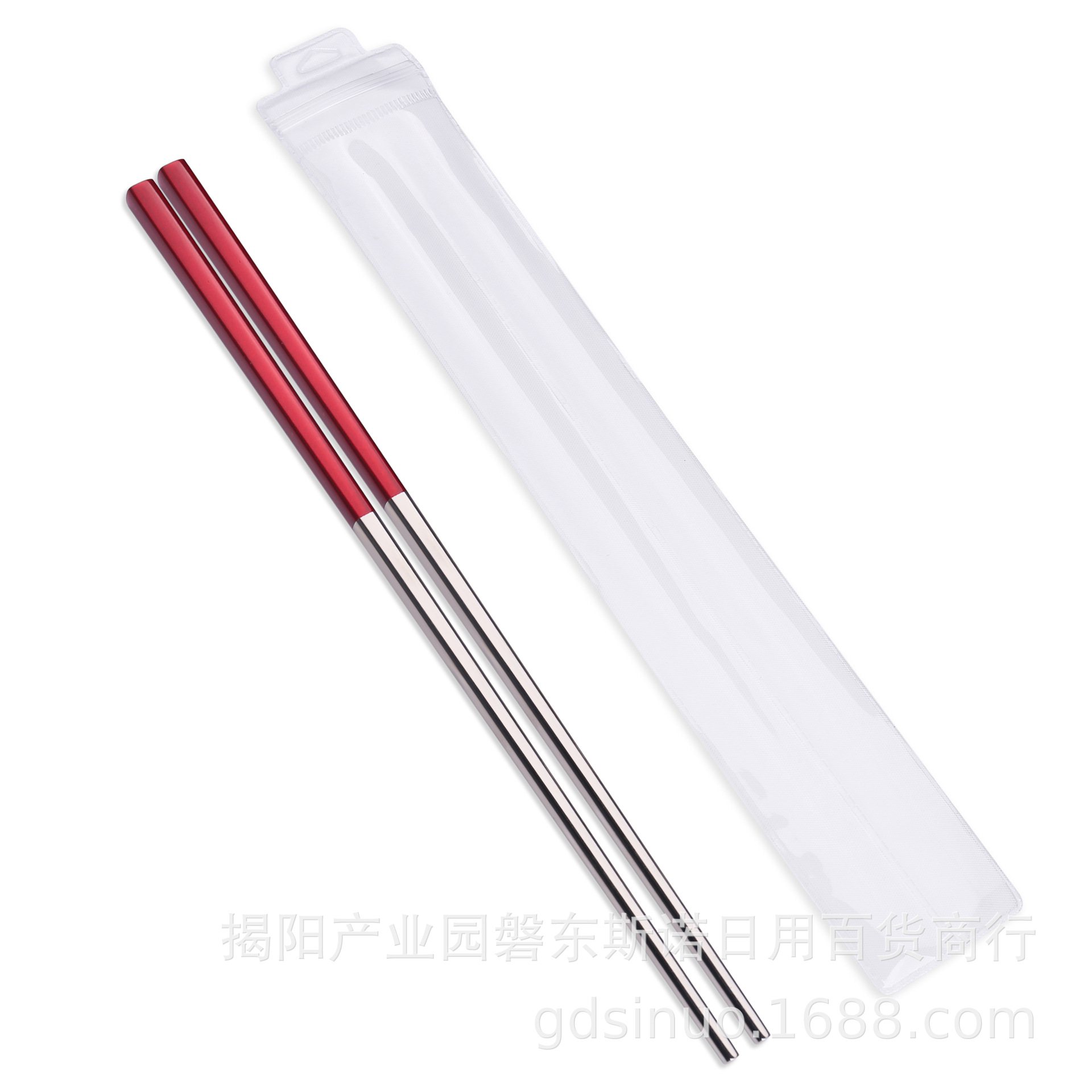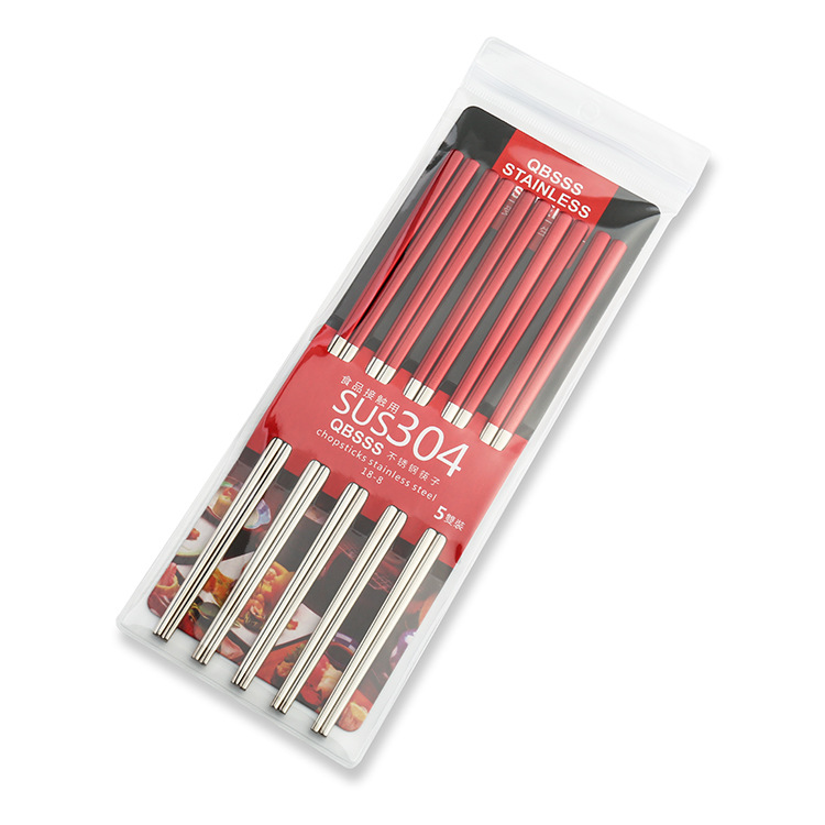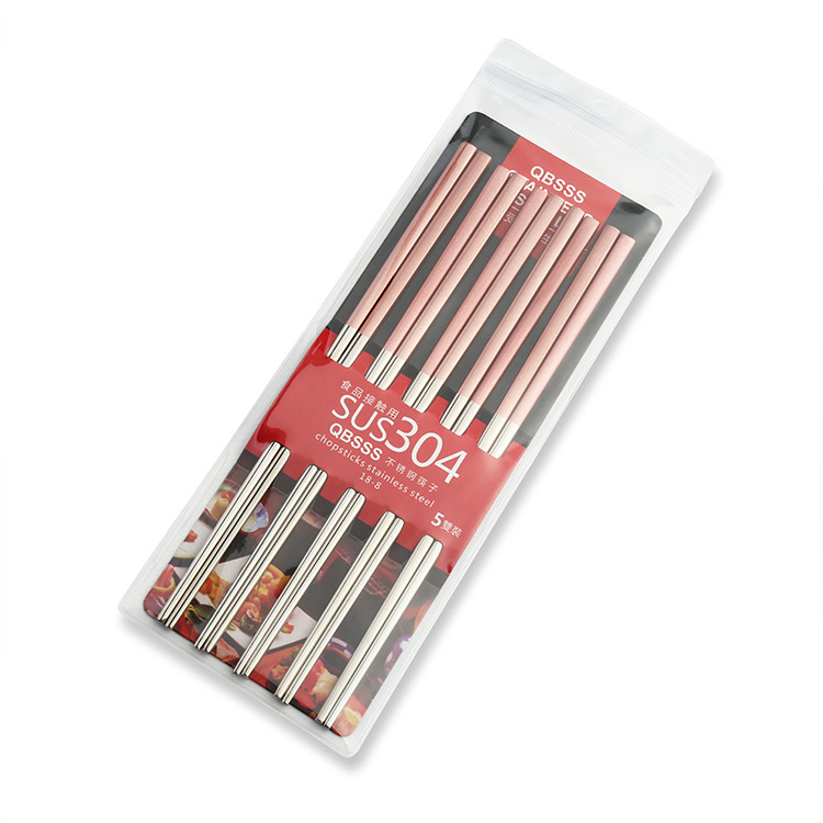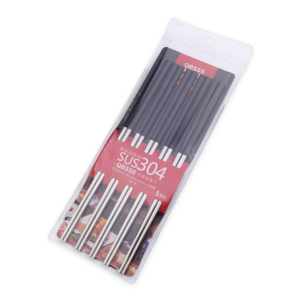 A 304不锈钢筷子 葡萄牙同款方形亮光防滑家用黑金筷套装礼品餐具