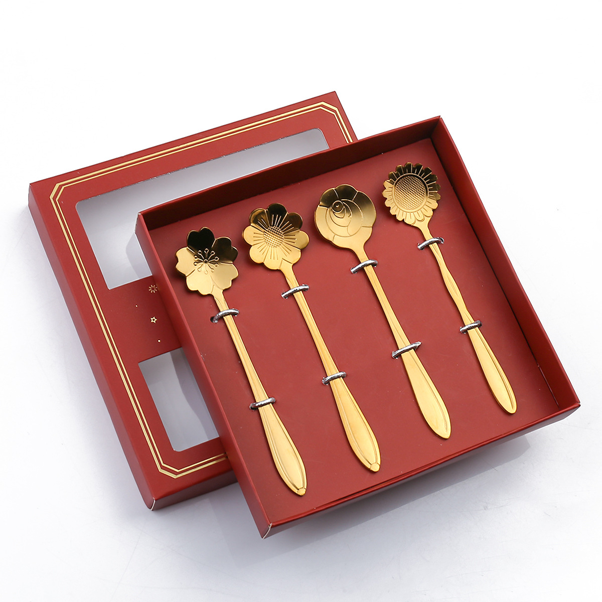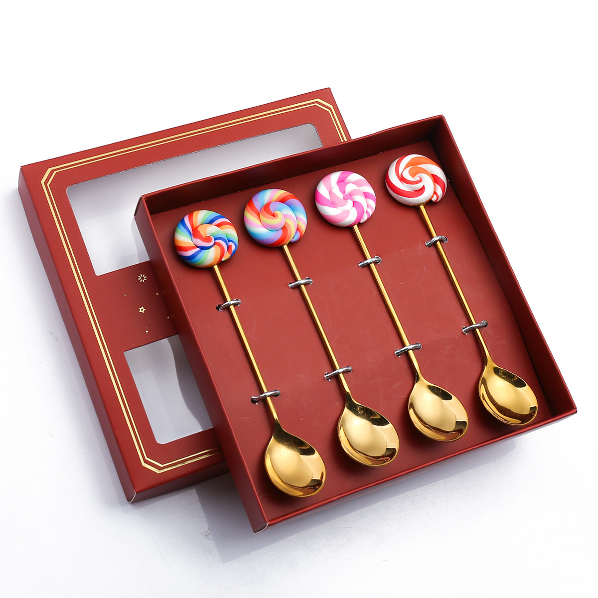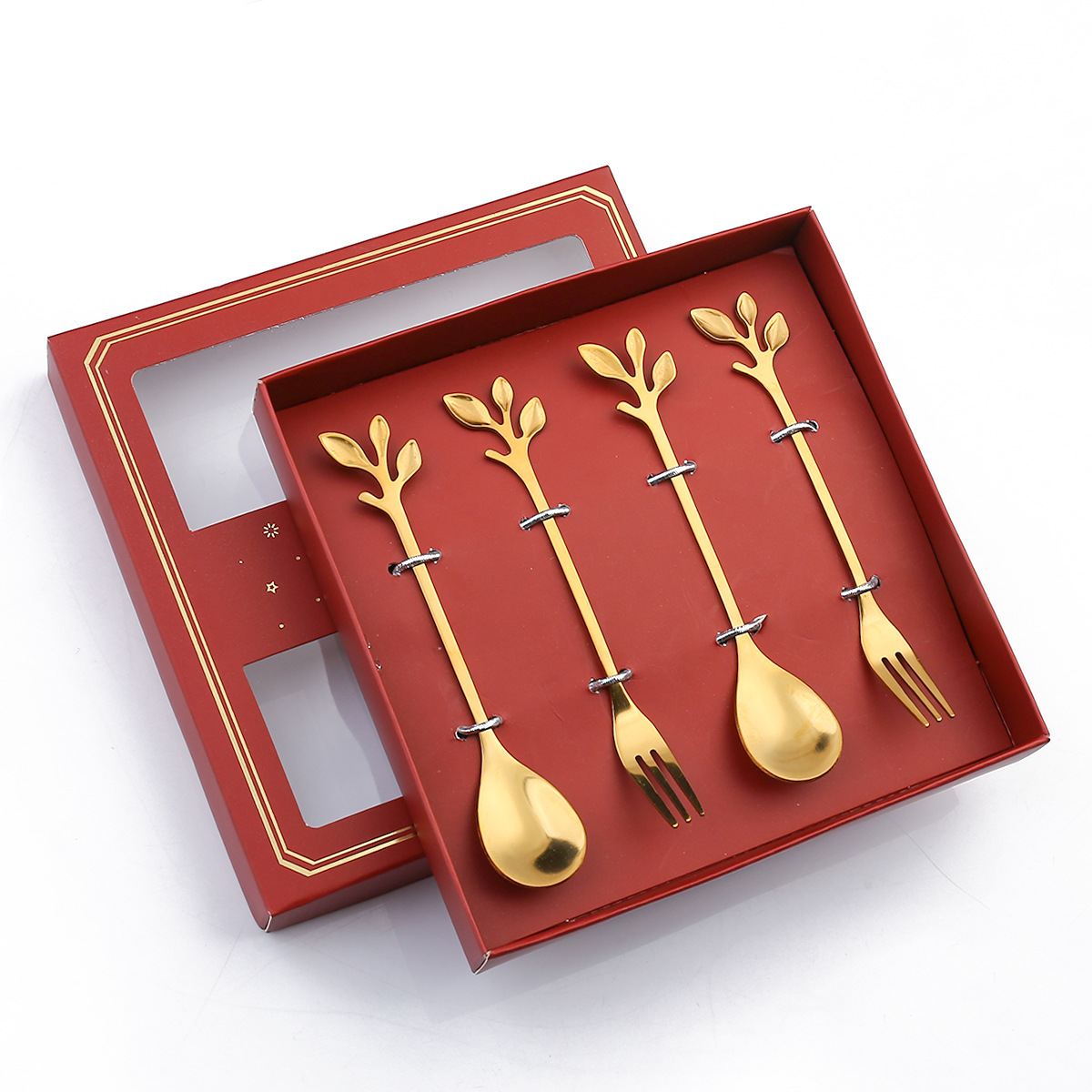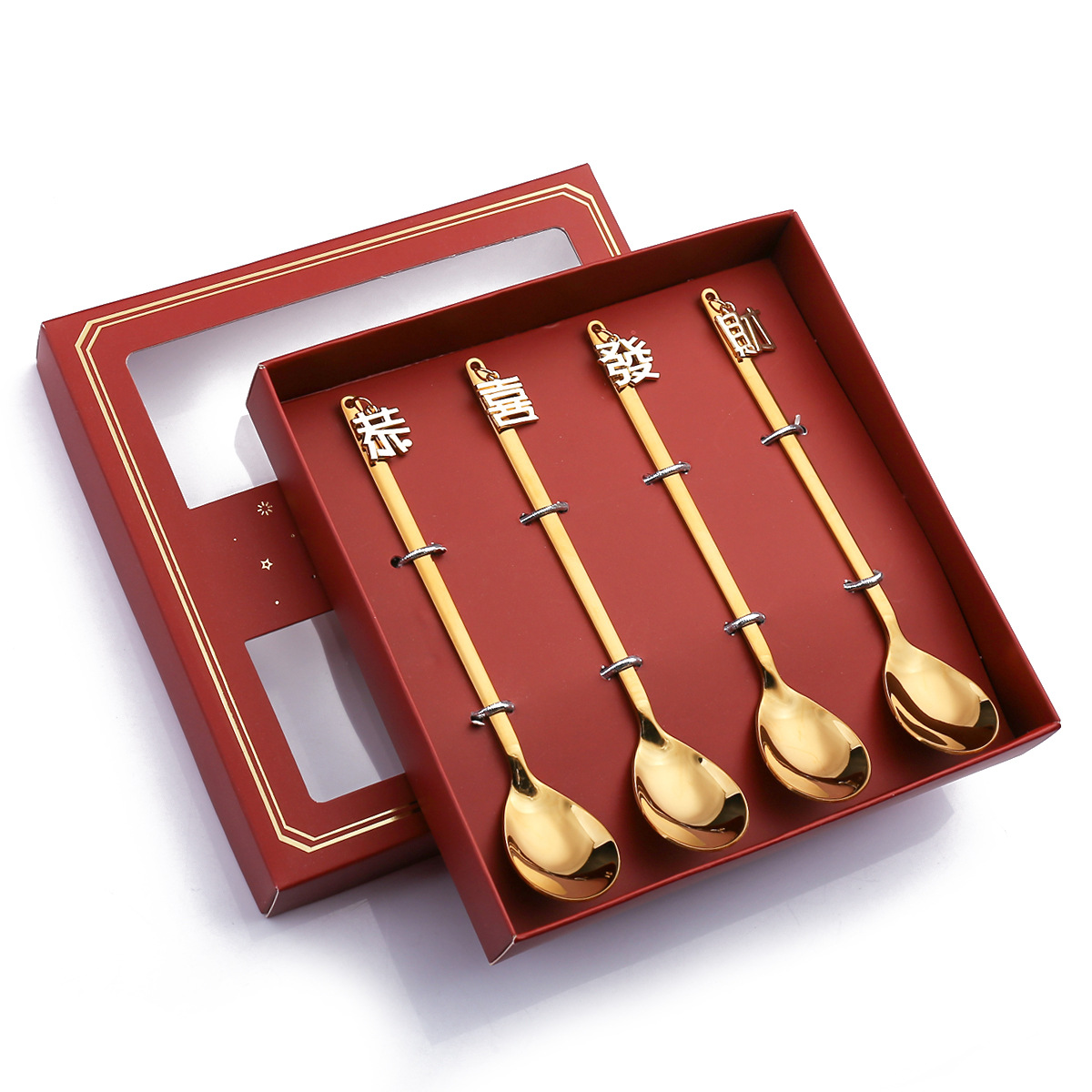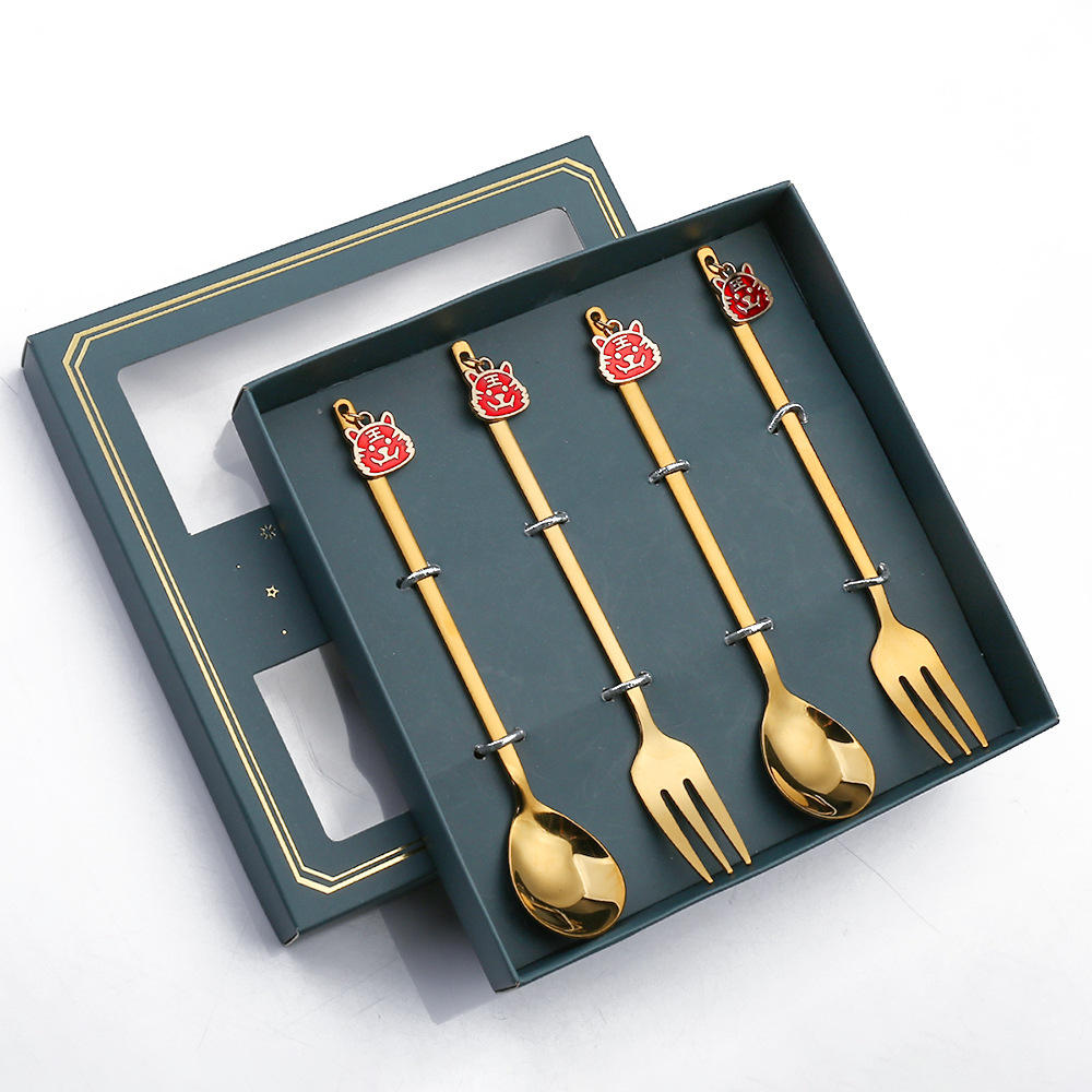 A 新年礼物 创意吊坠咖啡勺水果叉 不锈钢勺子叉子喜庆餐具套装..