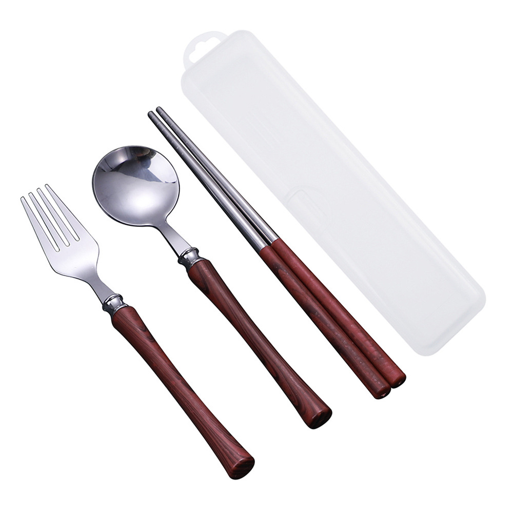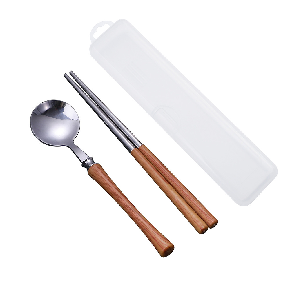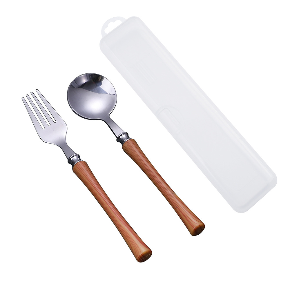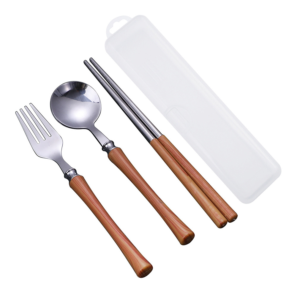 A 儿童餐具 ins风创意礼品 木纹勺子叉子筷子 学生便携餐具套装..