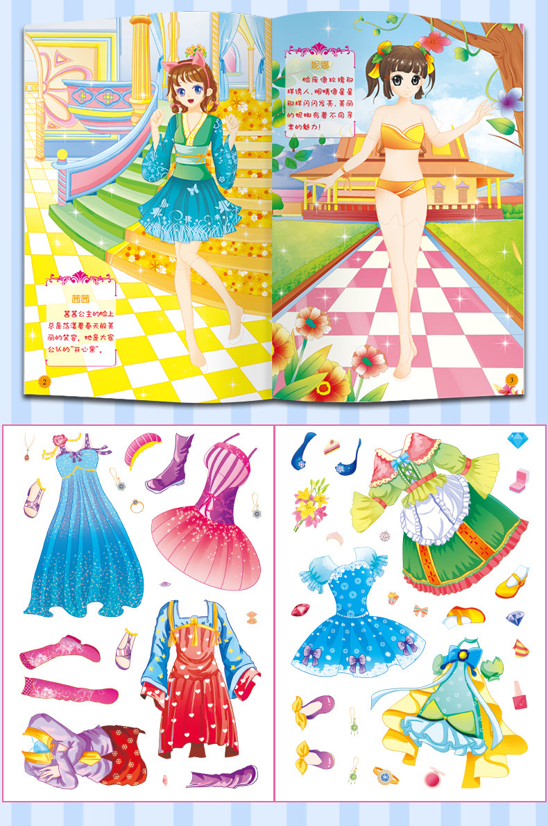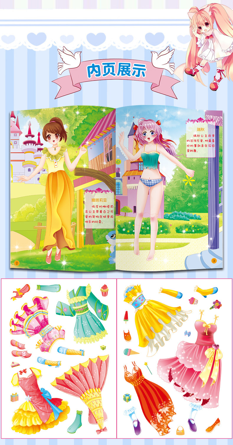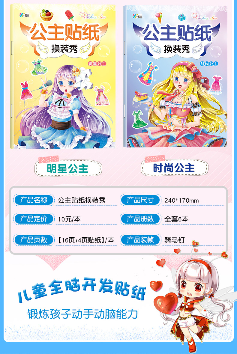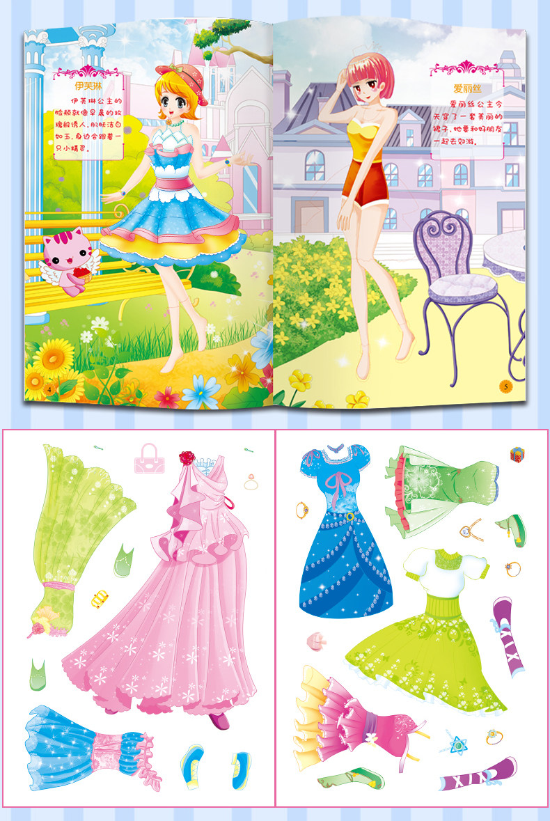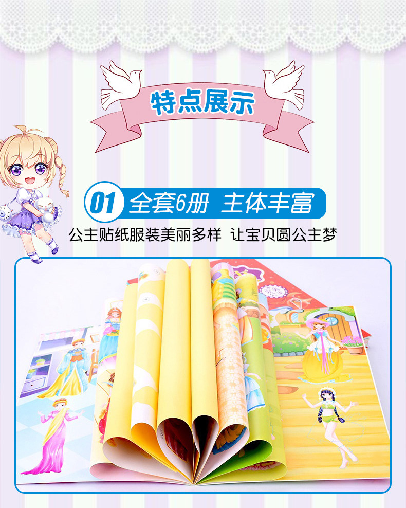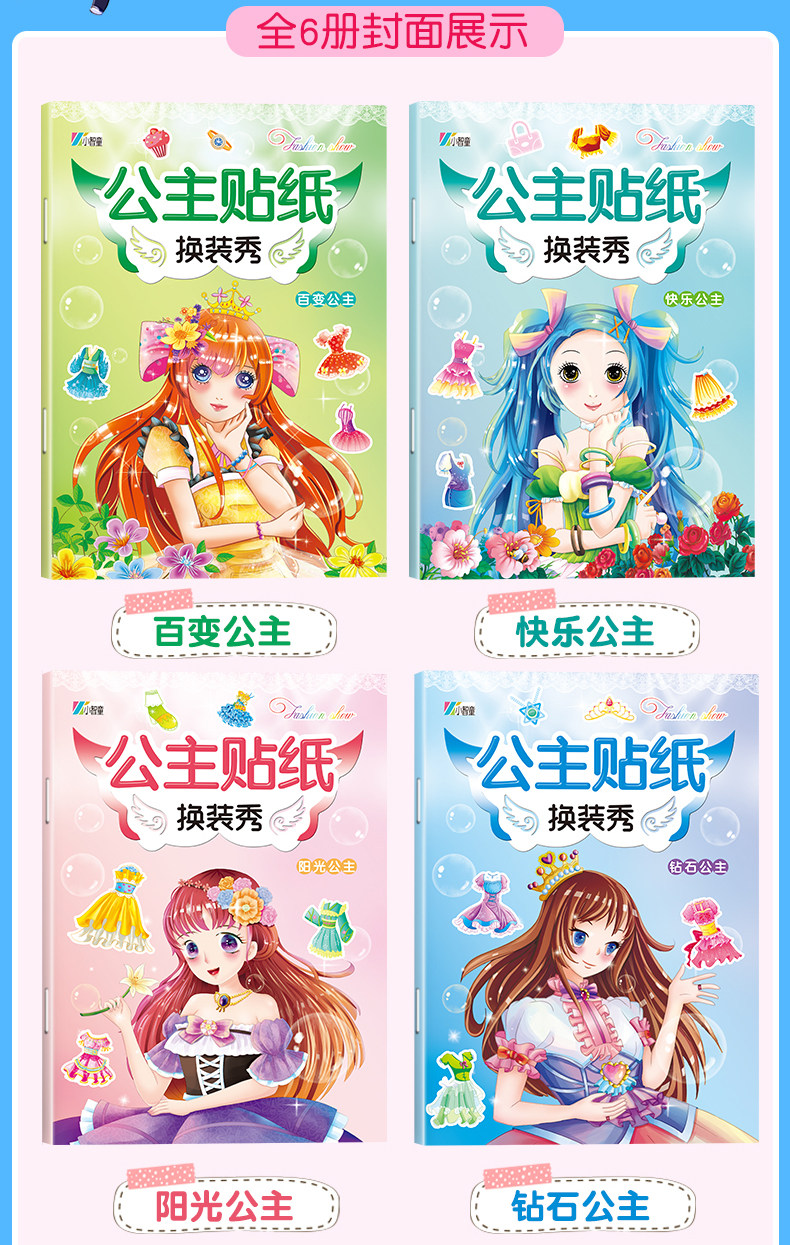 6本套公主换装贴纸女孩趣味粘贴贴画书3-6岁儿童卡通早教益智玩具