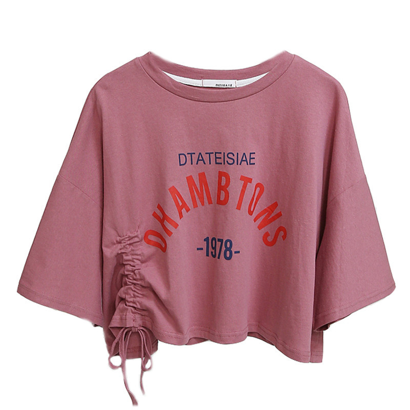女士打底衫抽绳短款上衣打底衫女设计感气质女装短袖T恤女代发