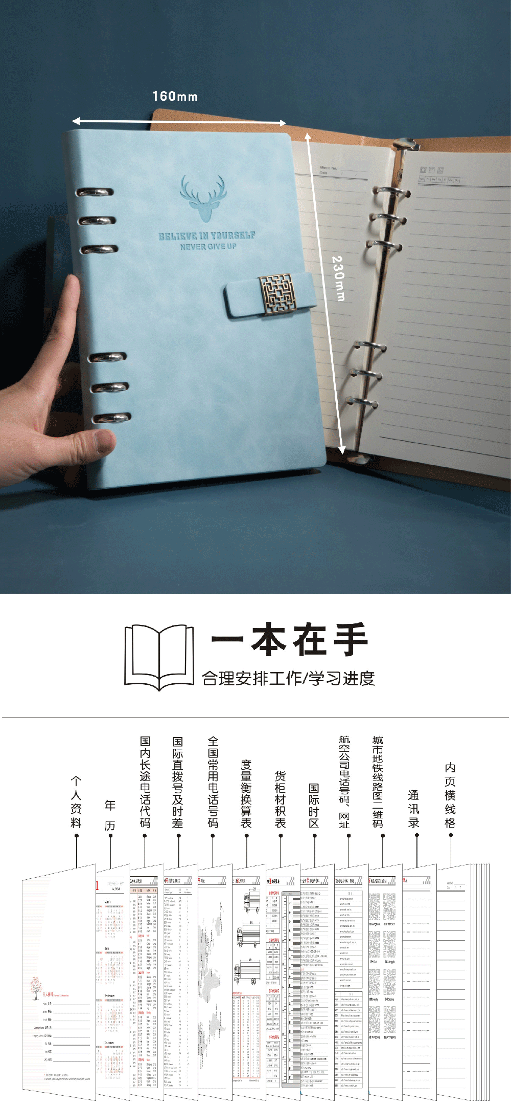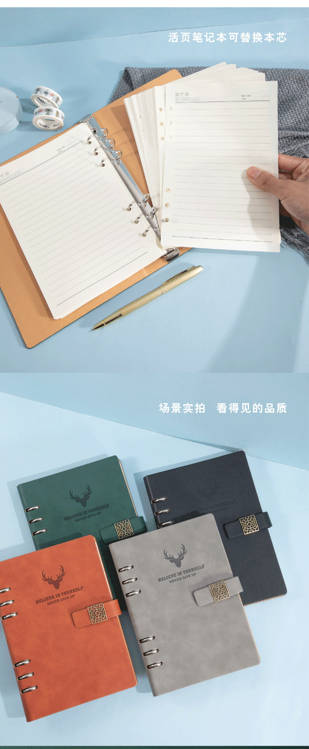 a5活页笔记本可拆卸扣环记事本可印logo会议记录本替换芯外壳刻字