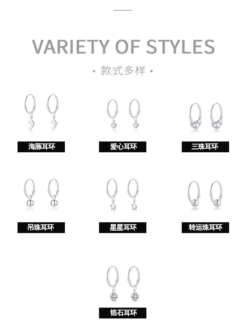 足银耳环耳棒养耳洞耳钉女纯银圆圈圈小耳圈黄金耳扣免摘耳饰