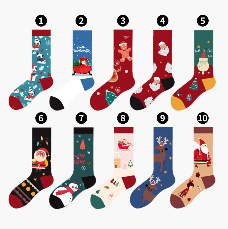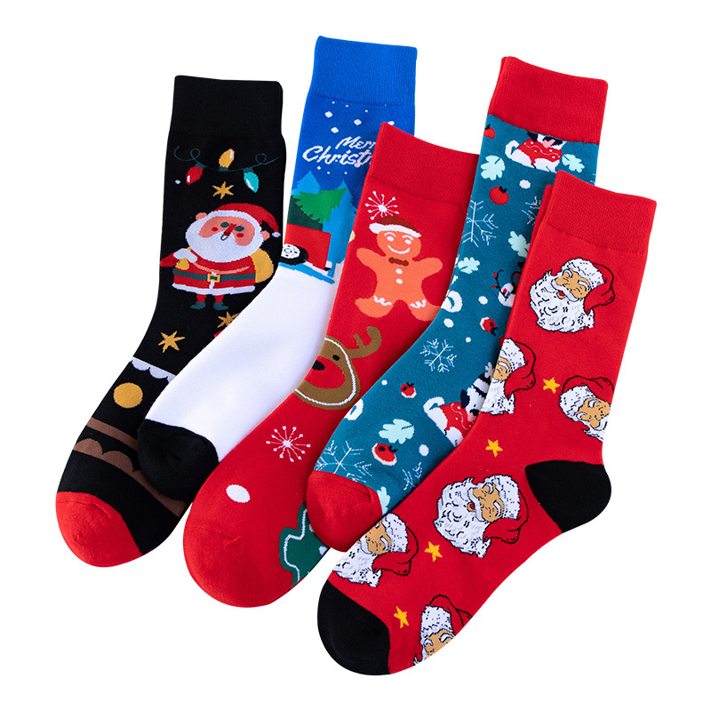 圣诞5双礼盒装中筒袜 秋冬雪人圣诞老人卡通纯棉欧美圣诞袜子批发