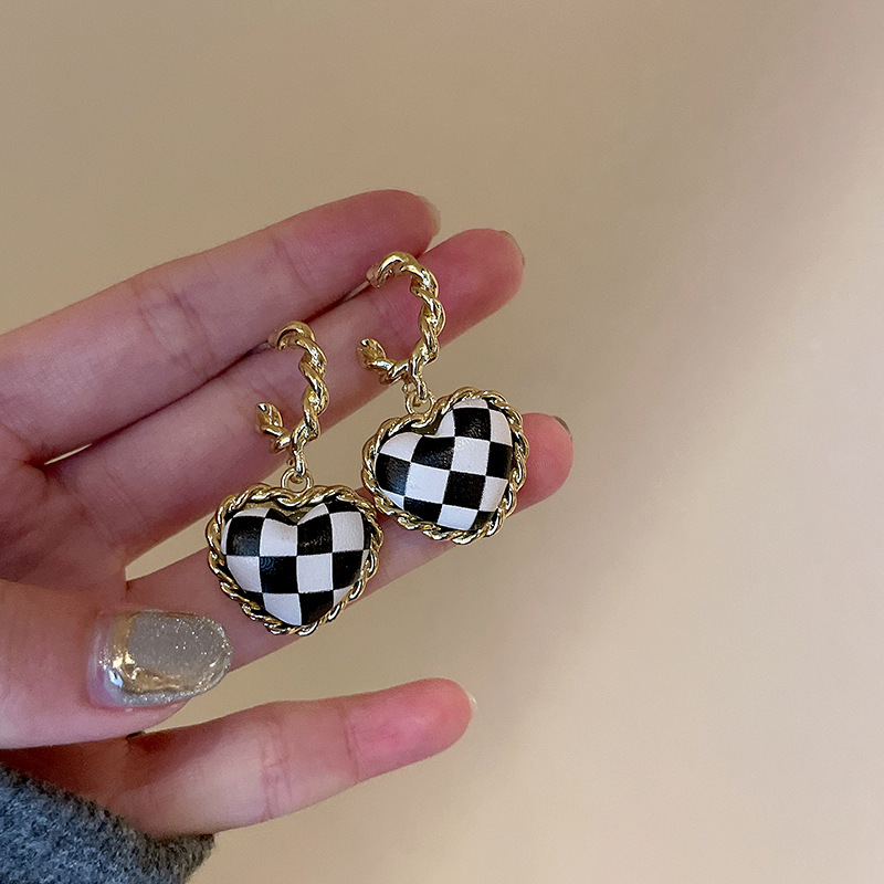 饰品925银针棋盘格耳环复古气质高级感耳饰韩国蝴蝶结耳钉女批发