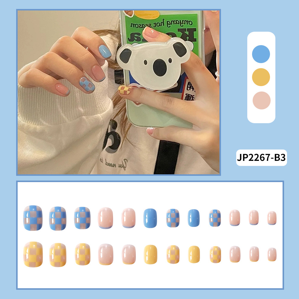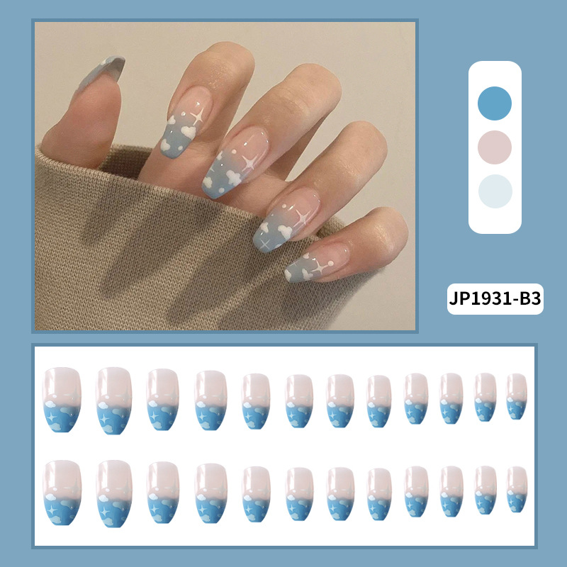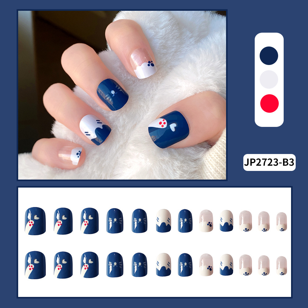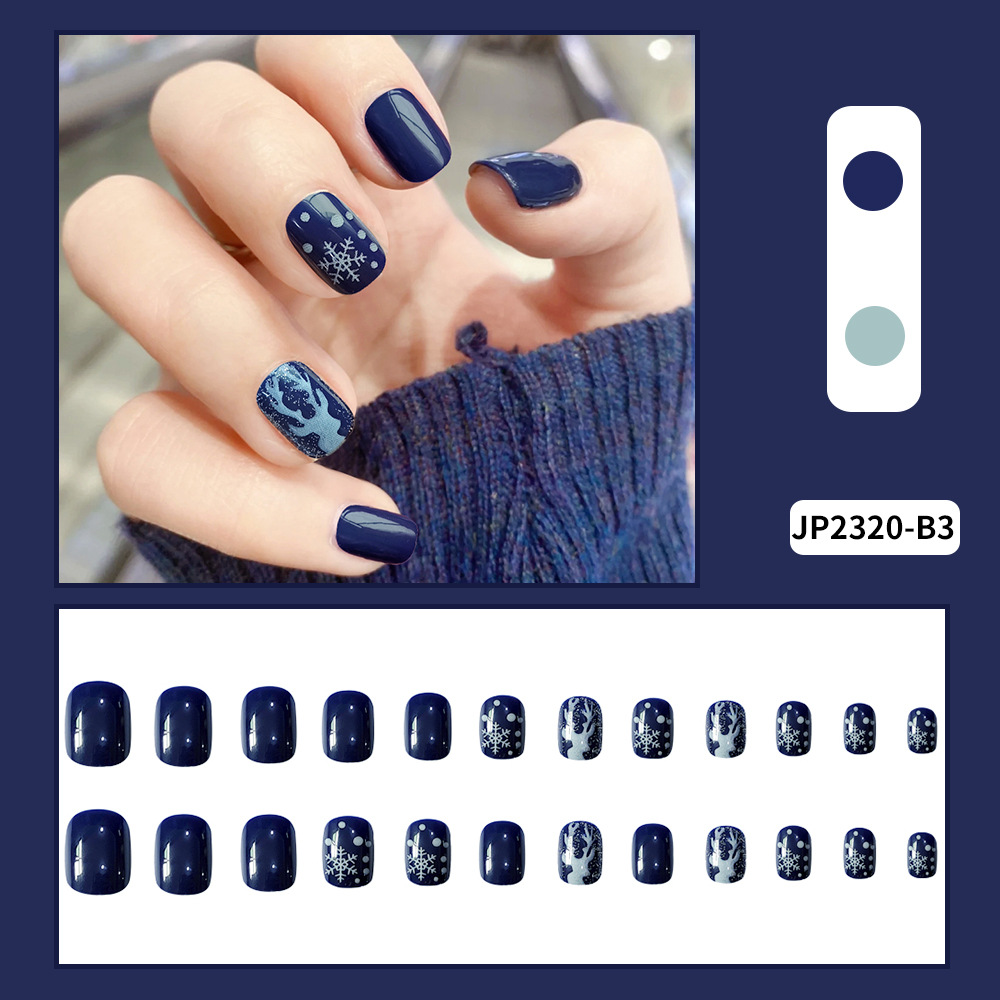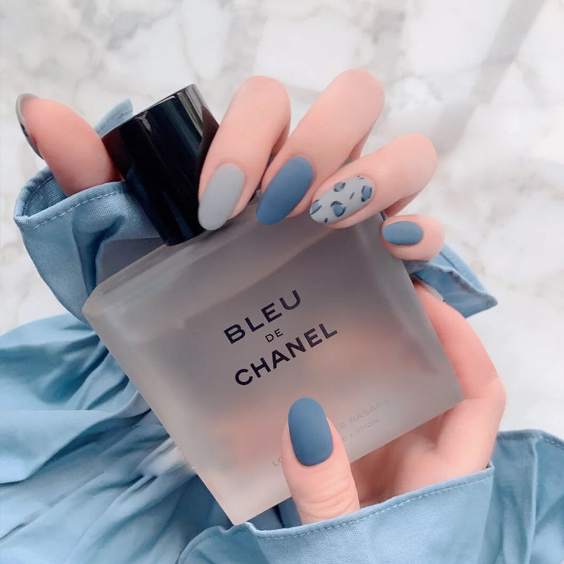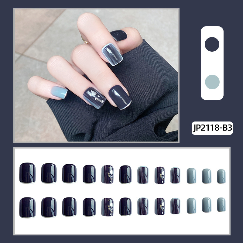 可穿戴美甲甲片可拆卸甲片 甲片成品 磨砂跳色雾霾蓝豹纹假指甲片