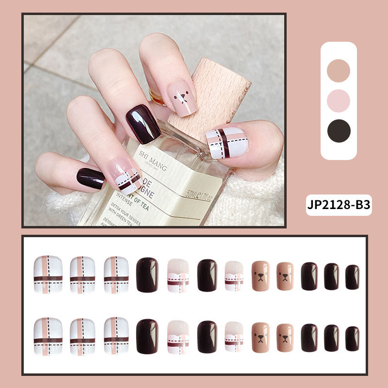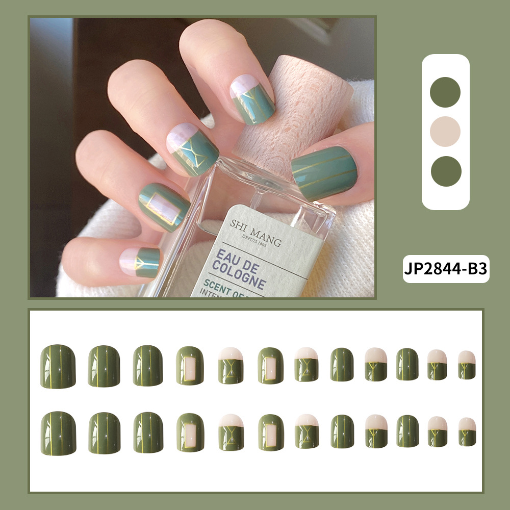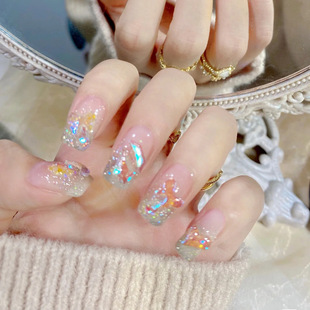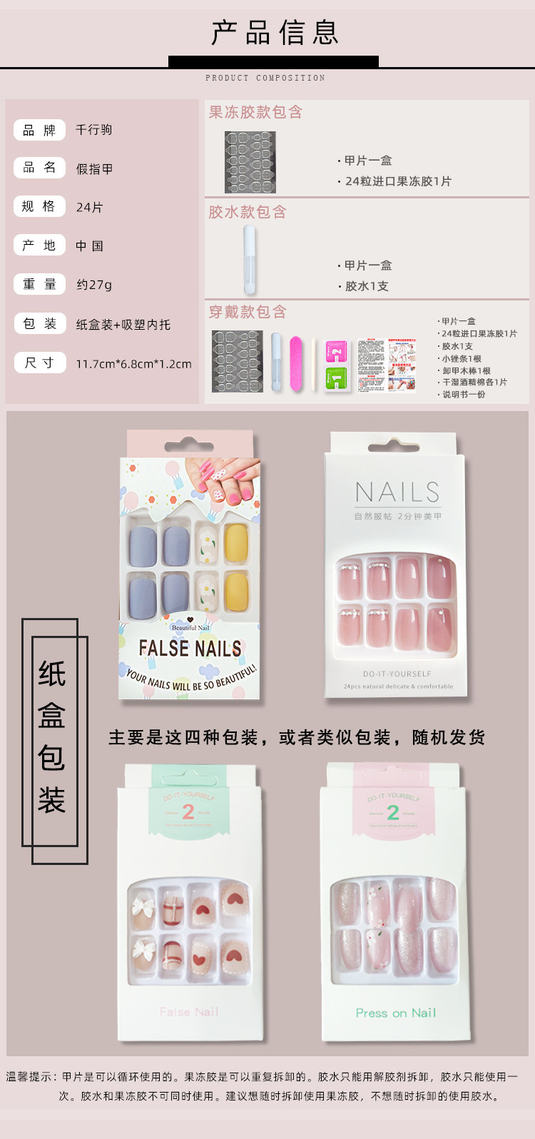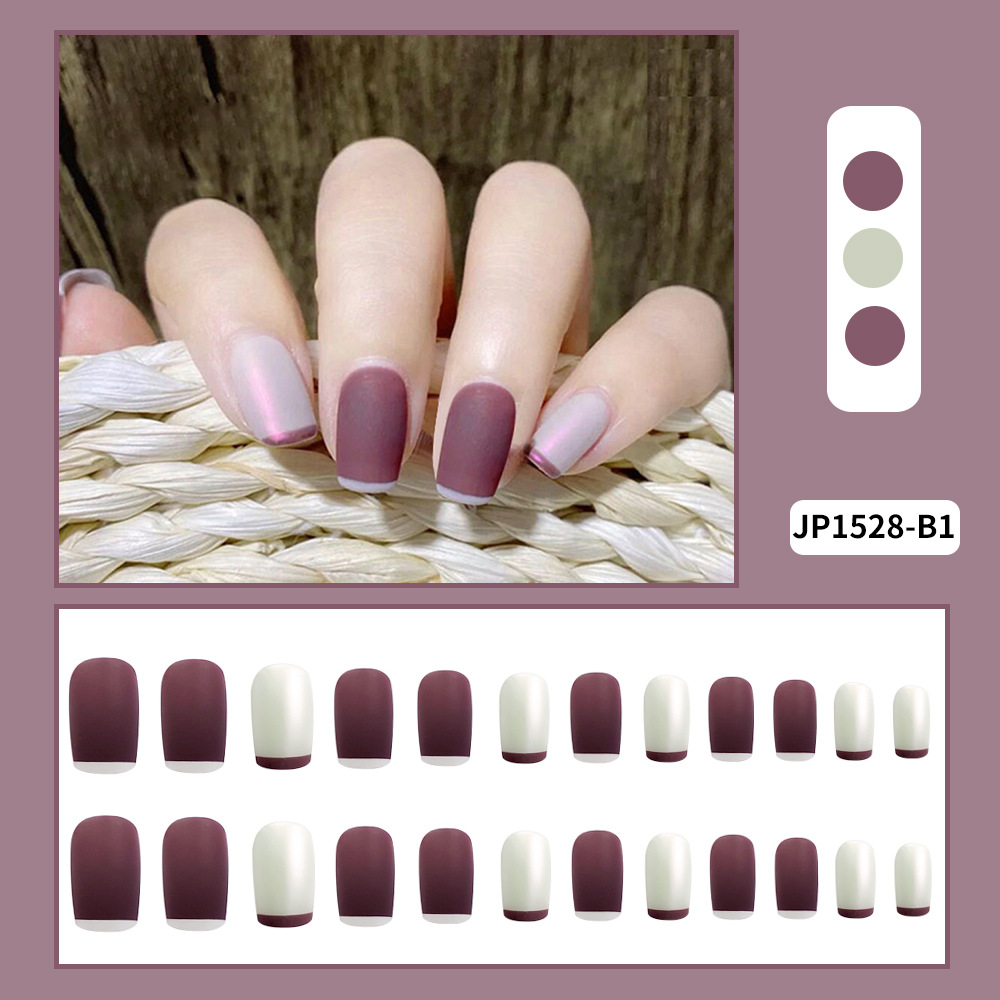 可穿戴美甲甲片可拆卸甲片 甲片成品 磨砂跳色雾霾蓝豹纹假指甲片