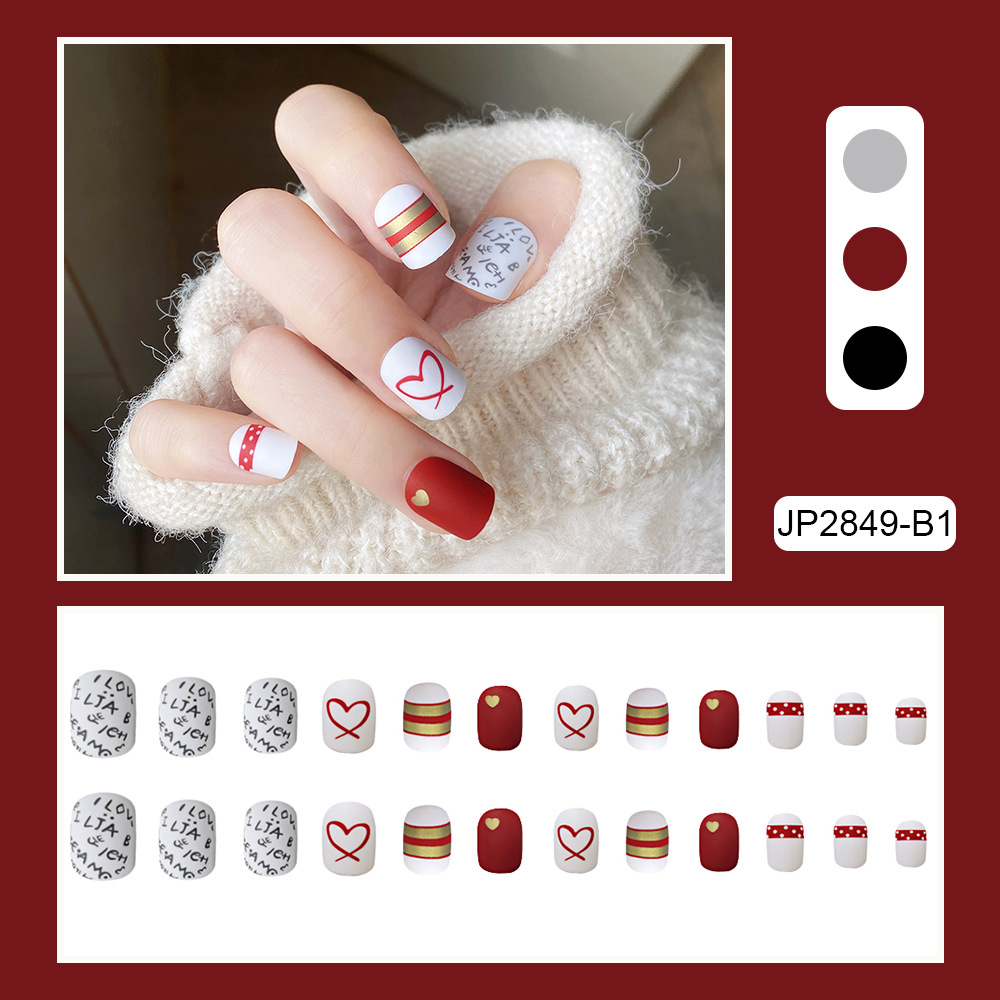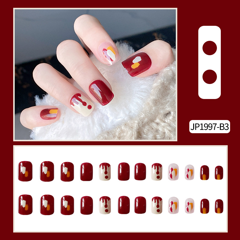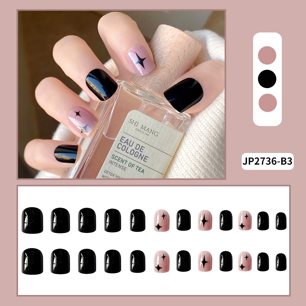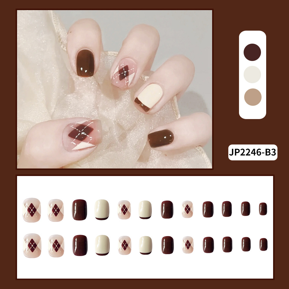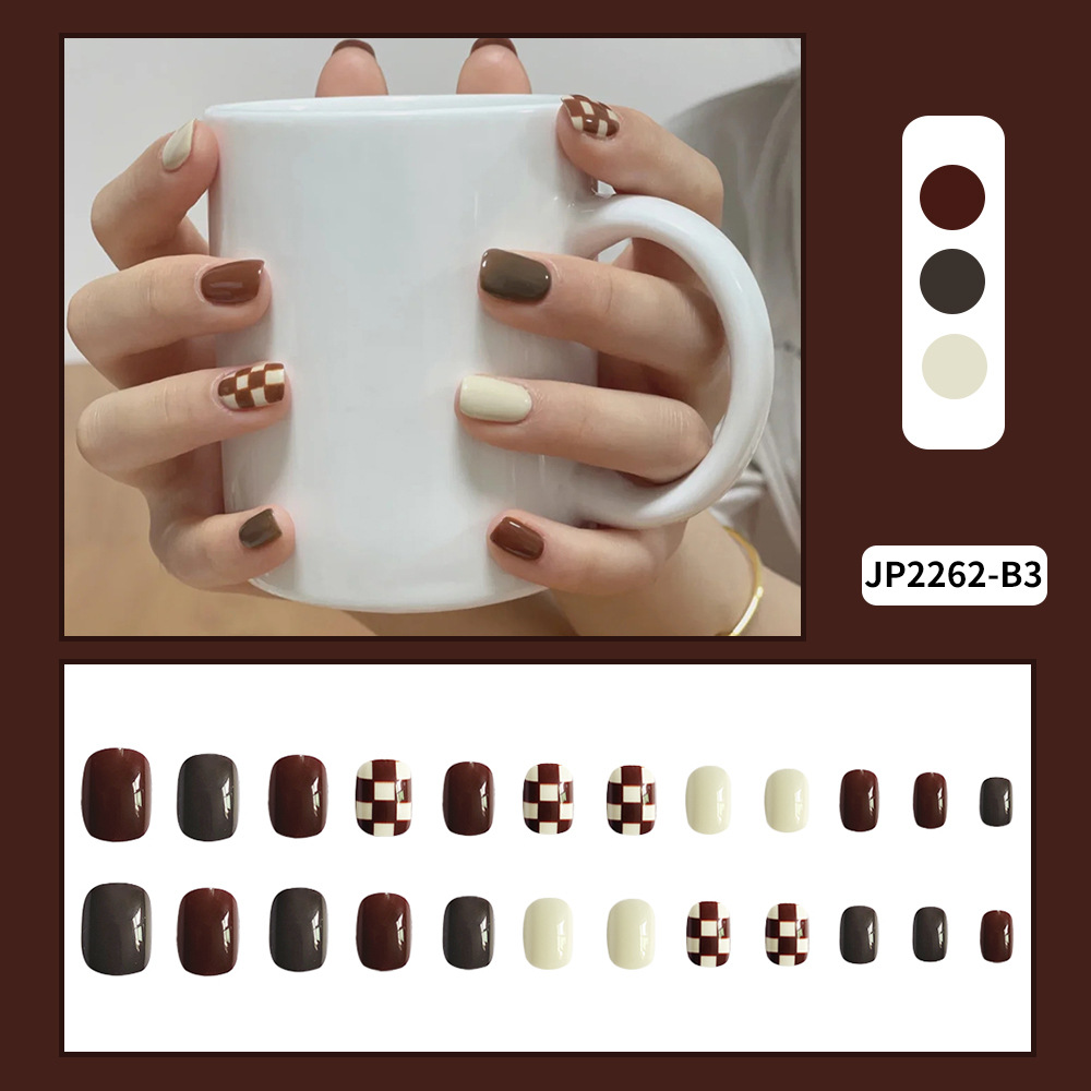 可穿戴美甲甲片可拆卸甲片 甲片成品 磨砂跳色雾霾蓝豹纹假指甲片