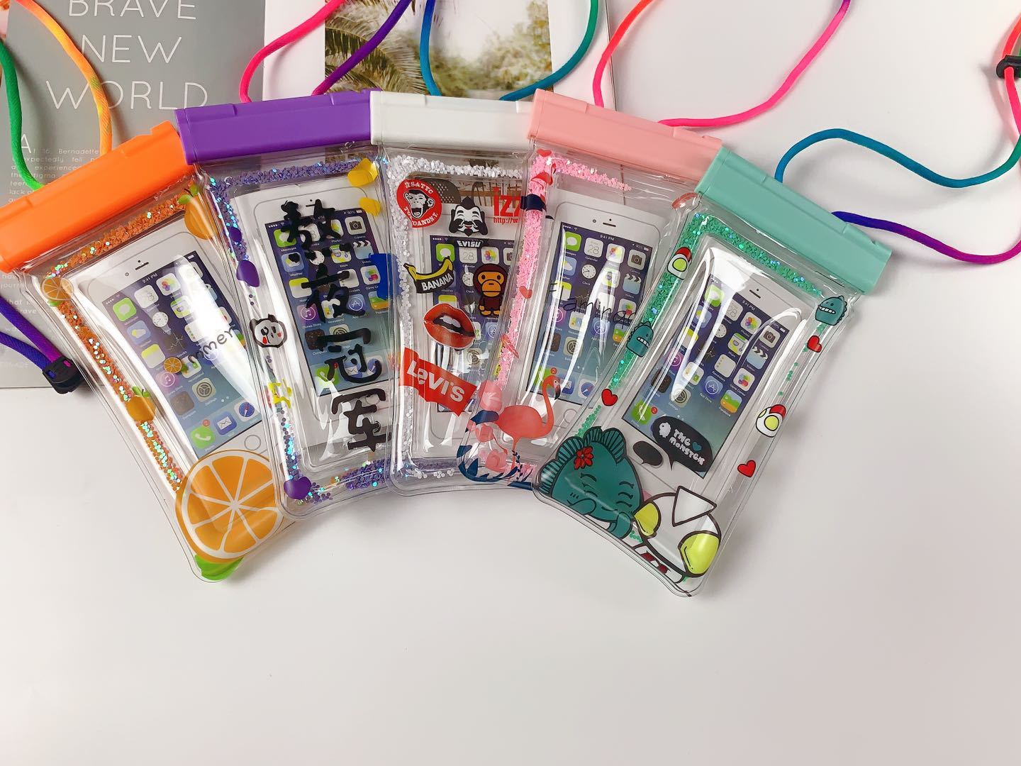 2022新款充气流沙手机防水袋纯色透明户外漂流游泳潜水手机保护袋