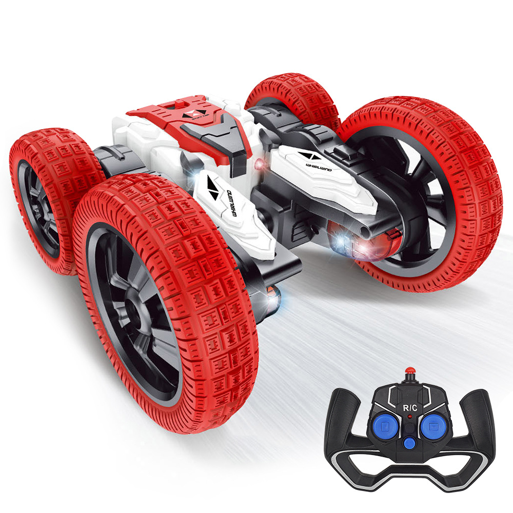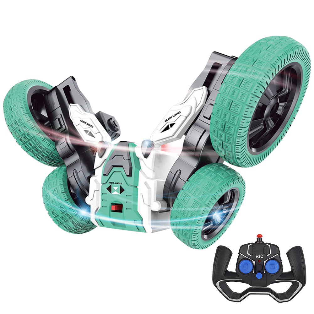 跨境遥控双面开花翻斗漂移特技车带灯光充电儿童男孩遥控玩具批发