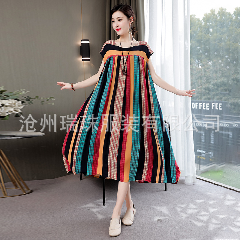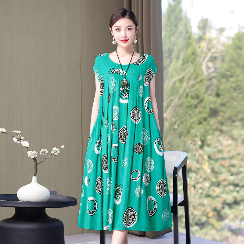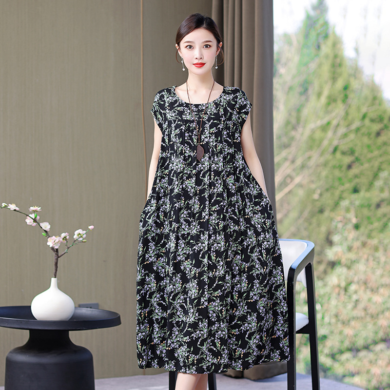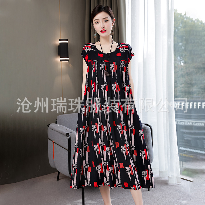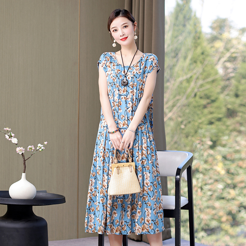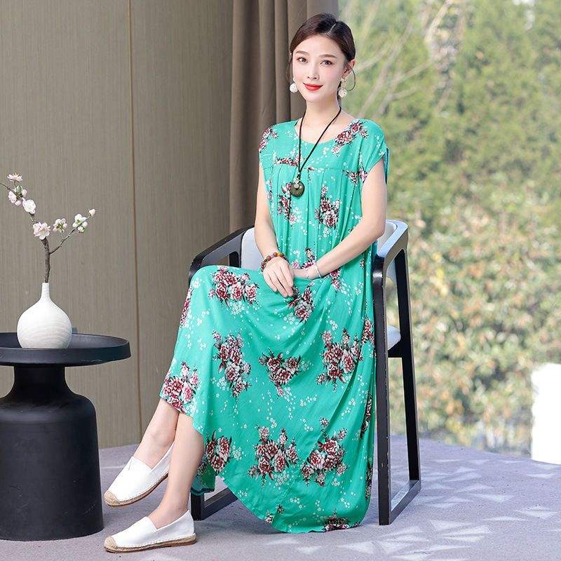 妈妈夏装棉绸连衣裙新款宽松大码中年洋气过膝长裙子200斤可穿
