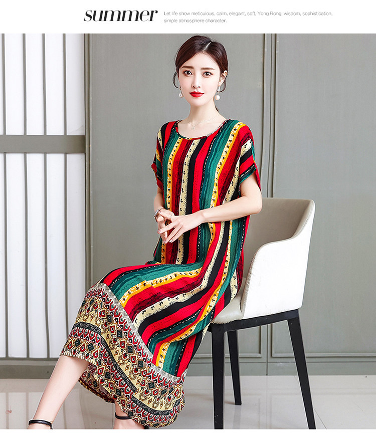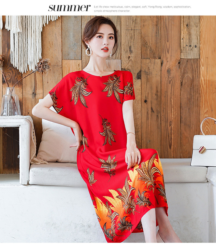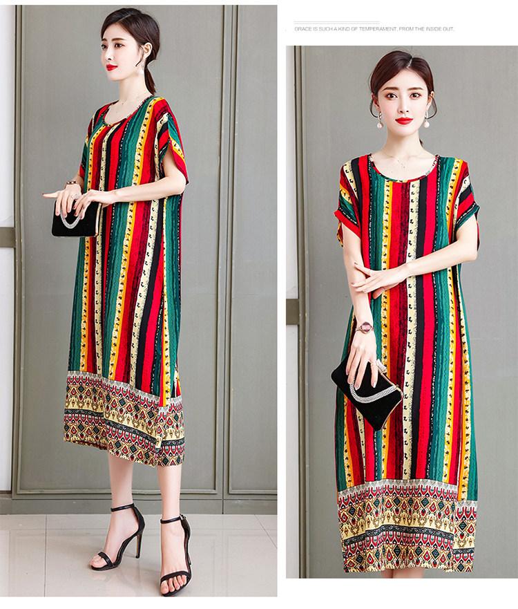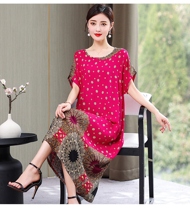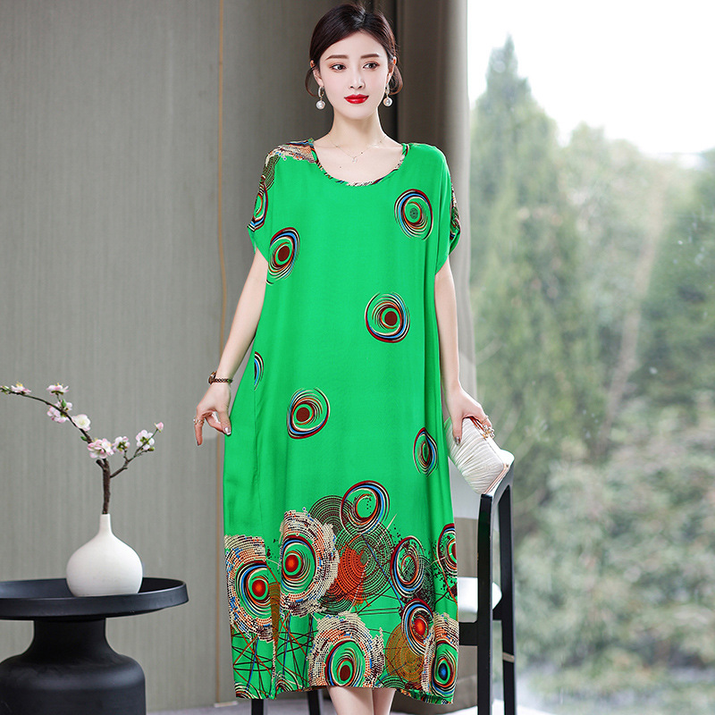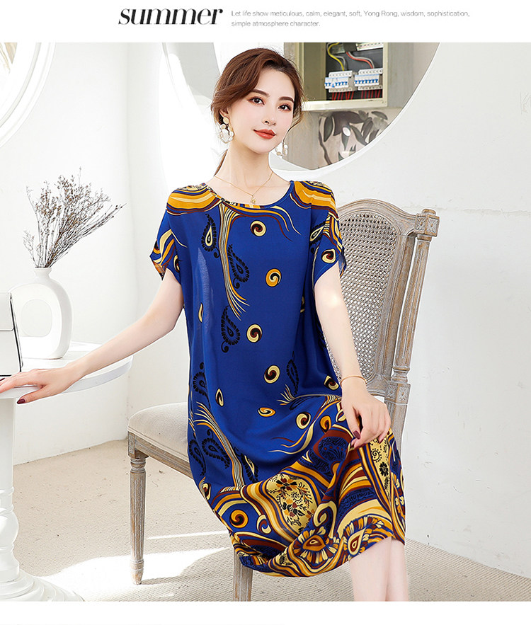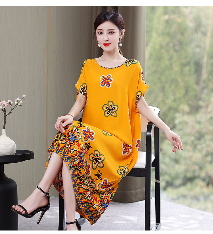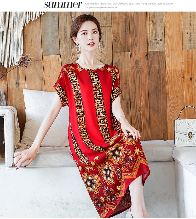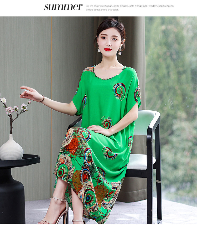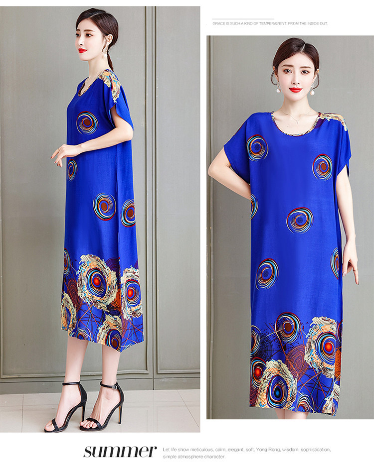 夏季新款中老年棉绸裙子女装印花连衣裙时尚妈妈装大码短袖长裙