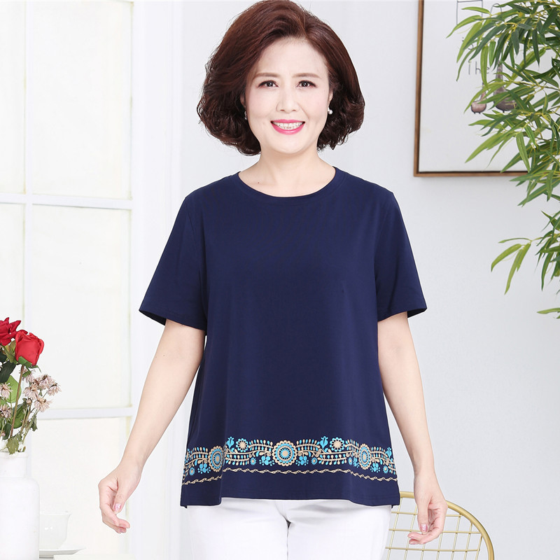 200斤胖妈妈装短袖加肥大码40岁50夏装T恤洋气中老年女上衣
