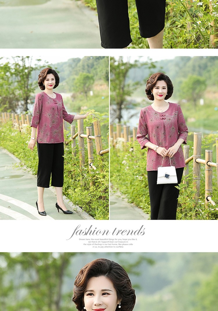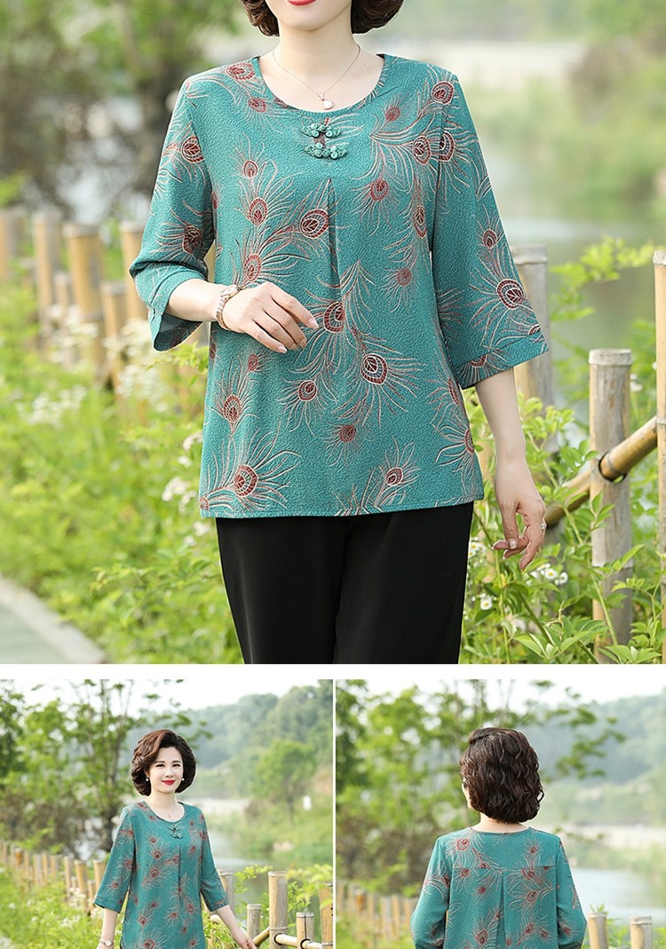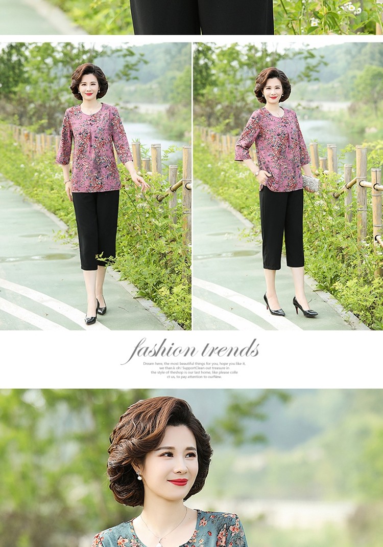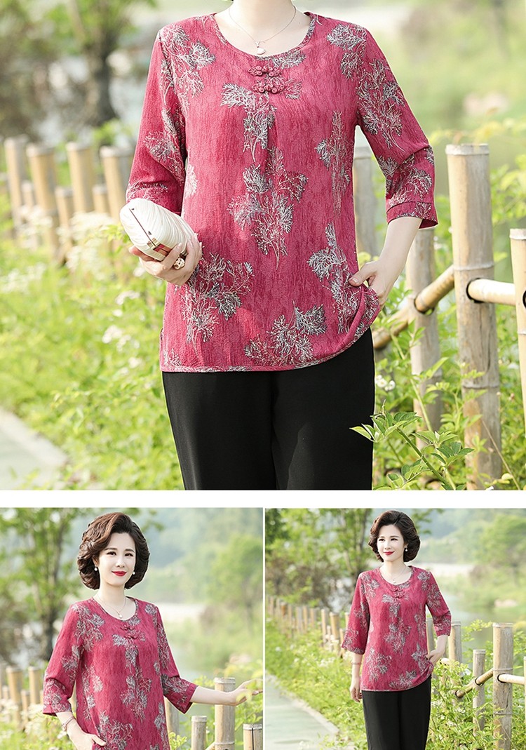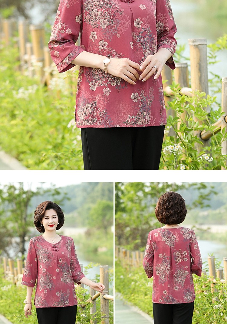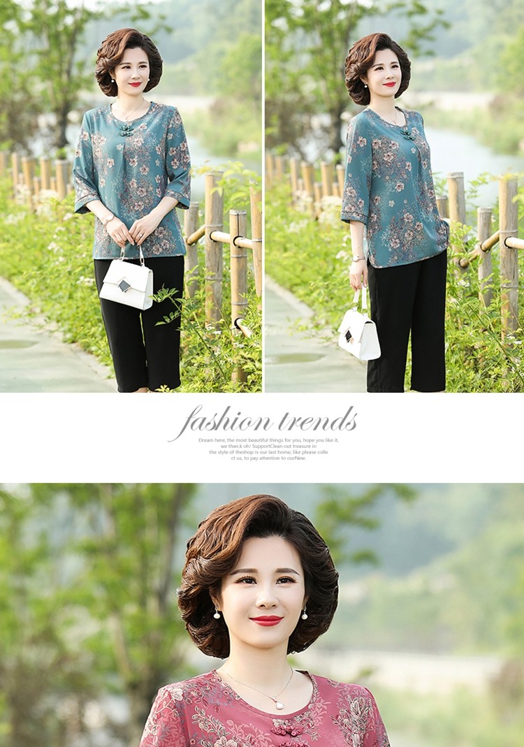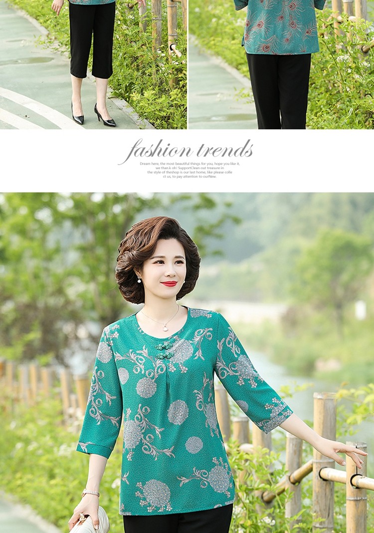 妈妈夏装新款T恤七分袖印花上衣中老年女装宽松大码打底衫薄款