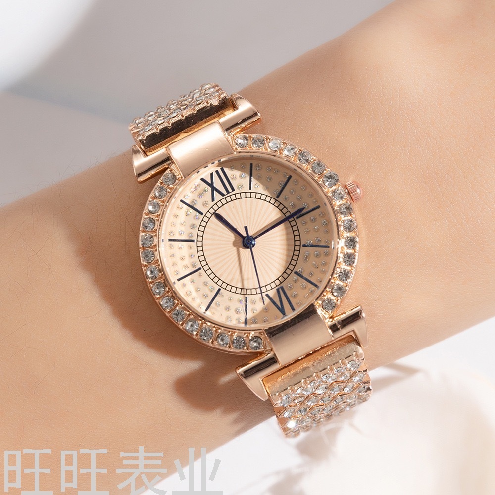 热销新款奢侈罗马满钻圆盘女士手表高档时尚轻奢石英腕表