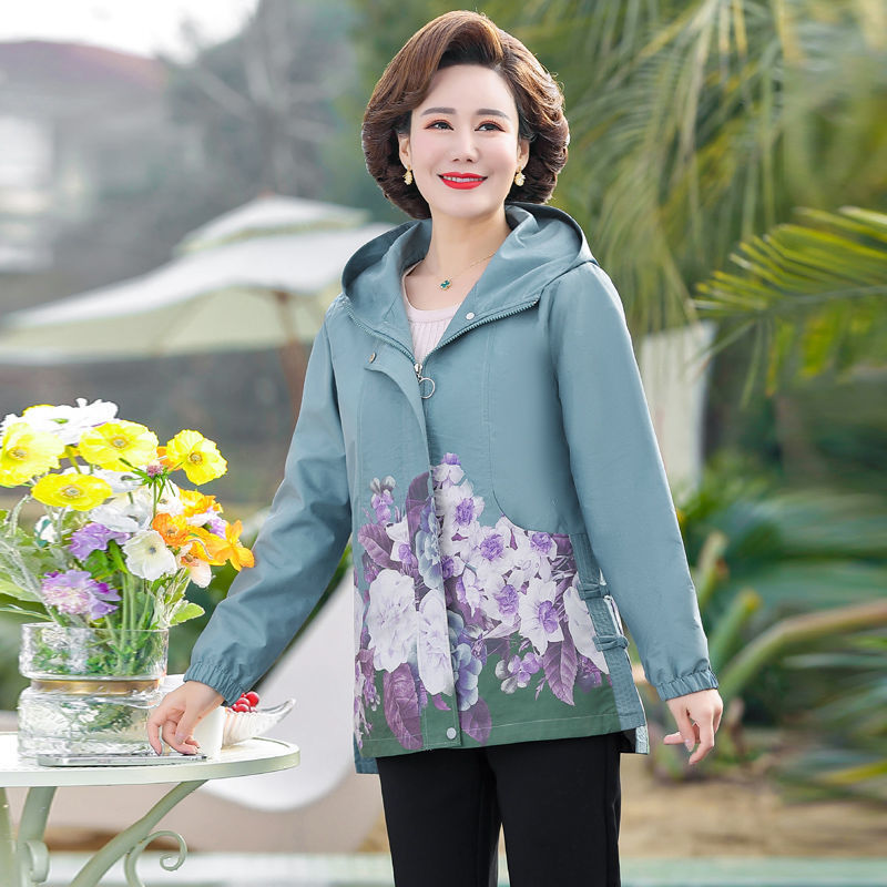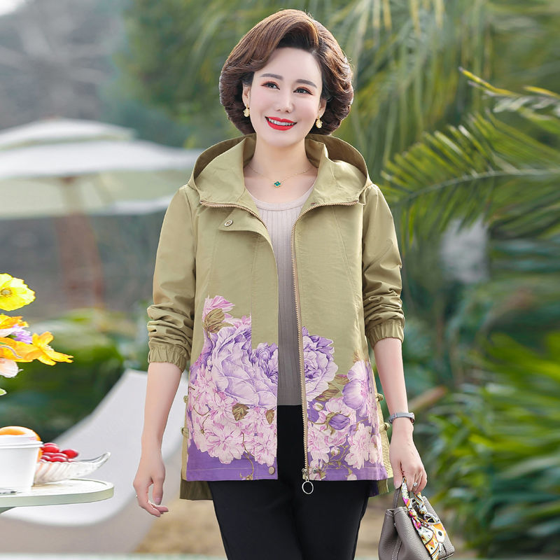 中年妈妈春秋装外套洋气大码春秋上衣2022新款中老年风衣女短款
