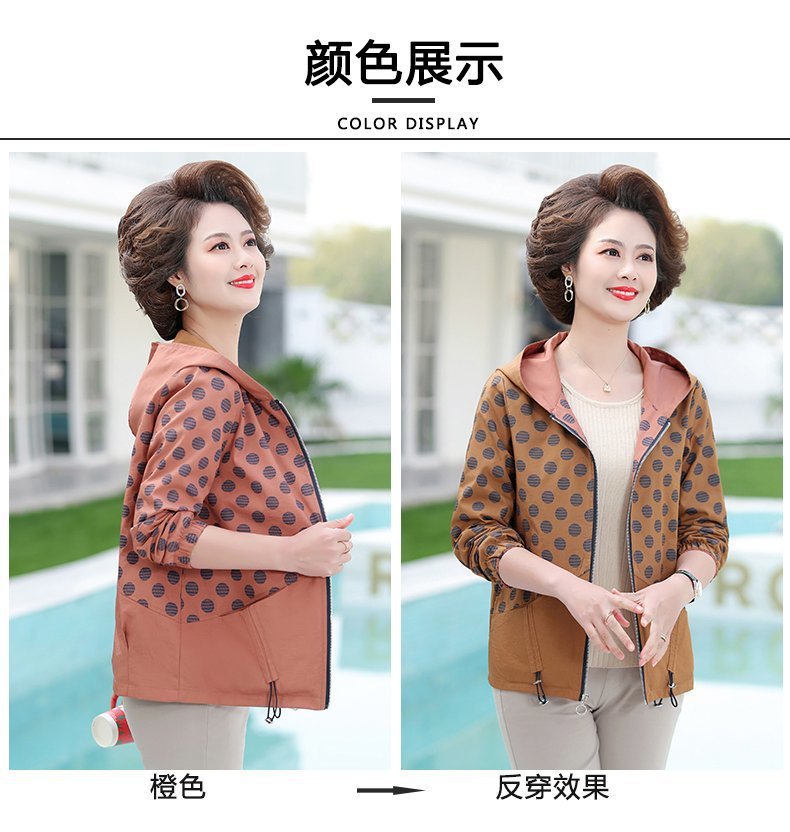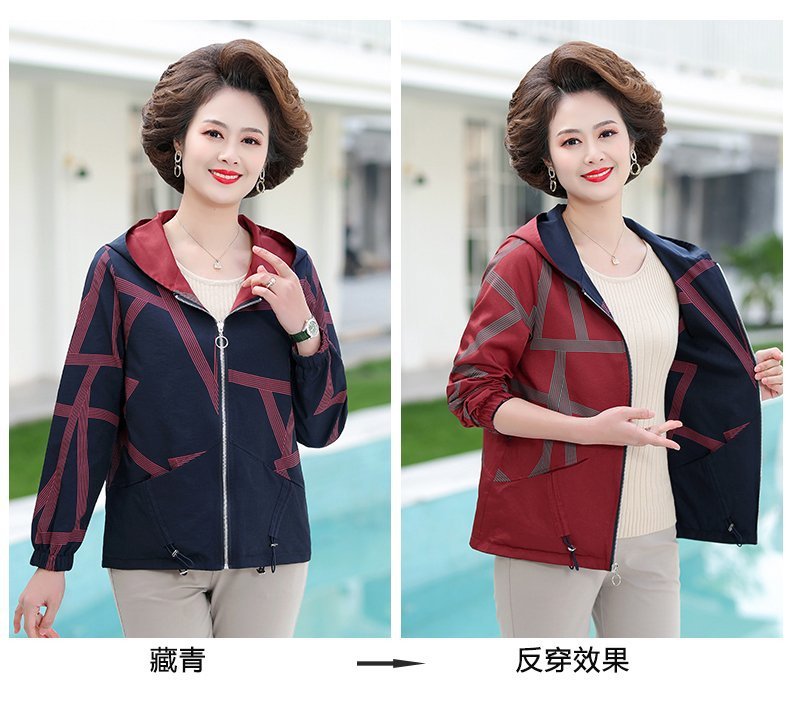 妈妈春秋装薄外套女短款两面穿新款中老年春装夹克时尚中年人上衣