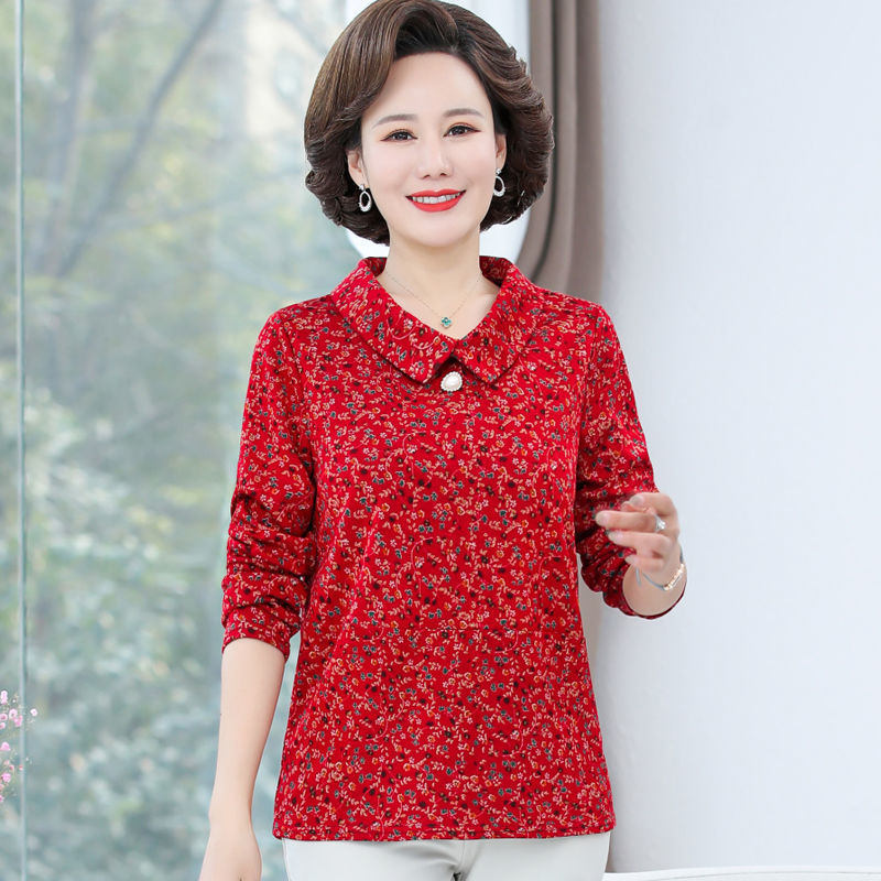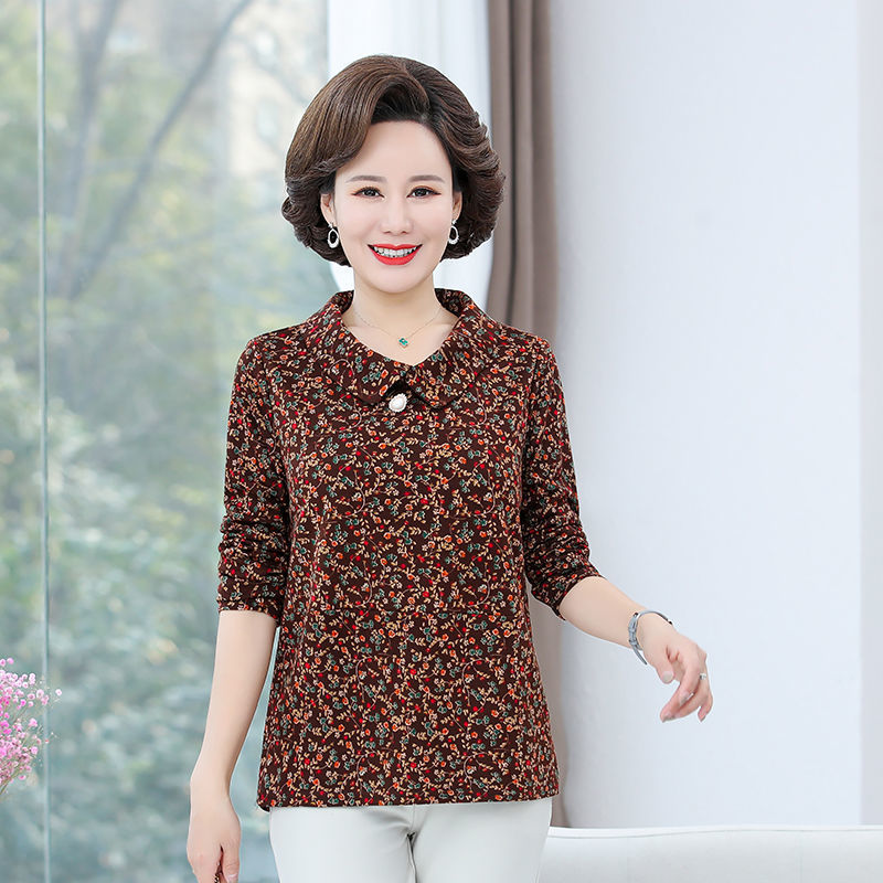 中年妈妈春装打底小衫2022新款洋气40岁减龄中老年女装春秋款上衣