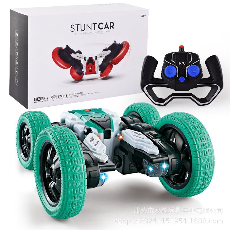 跨境RC遥控扭变特技车儿童电动遥控玩具车炫彩灯光双面车翻斗车