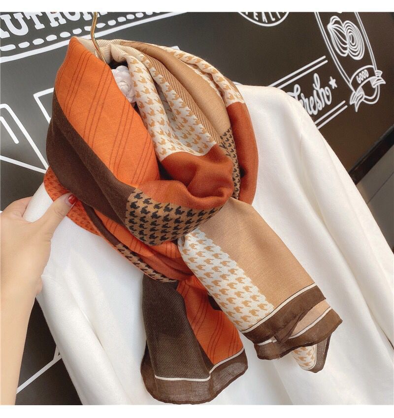 棉麻围巾女秋冬季新款韩版文艺撞色百搭丝巾防晒薄款纱巾保暖披肩