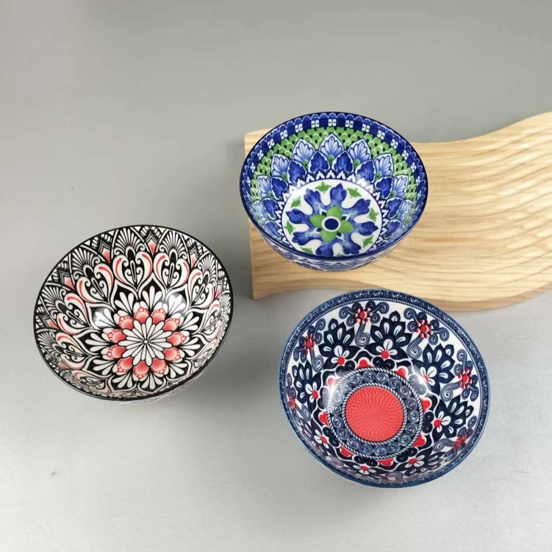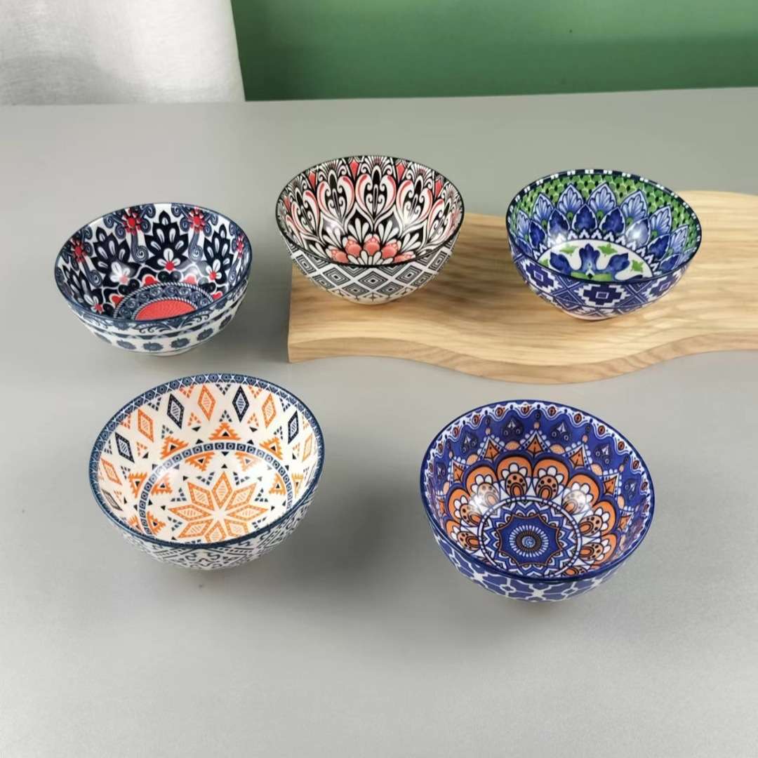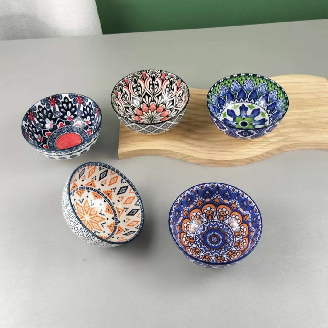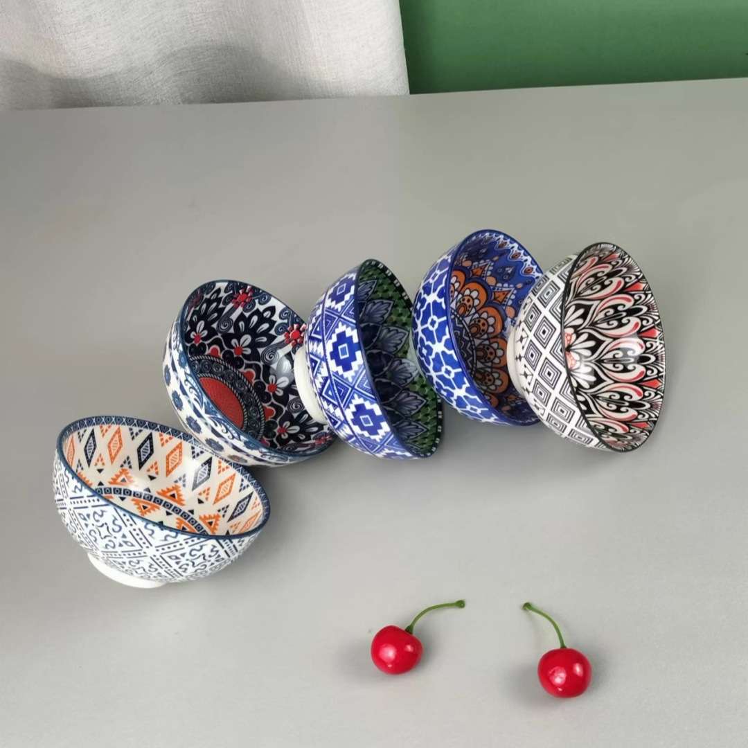 陶瓷碗沙拉碗盘子餐具波西米亚印花酒店用品耐高温外贸厨房用品