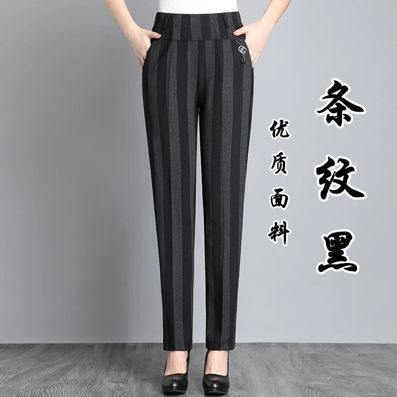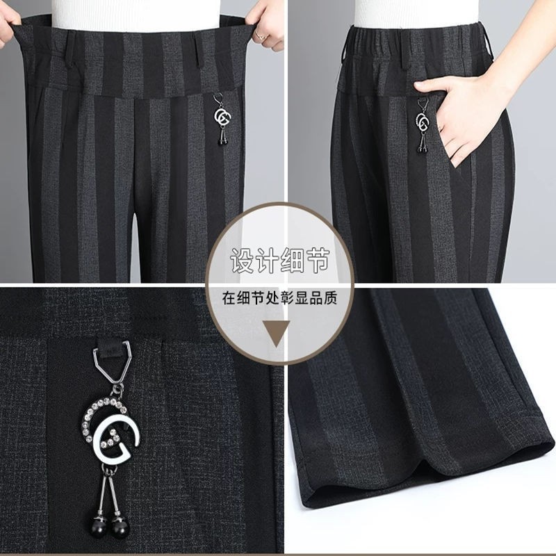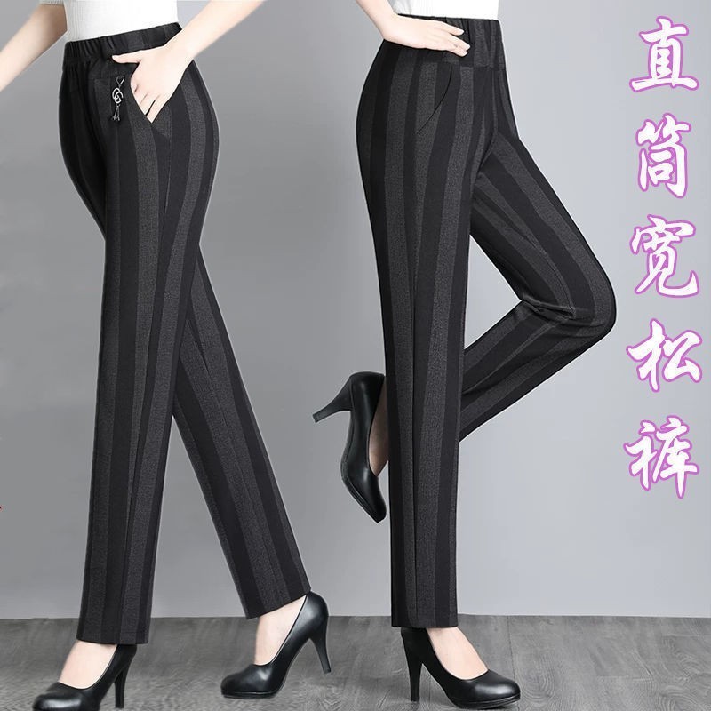 妈妈裤子2022春秋新款中年宽松高弹力直筒休闲长裤中老年女裤子潮