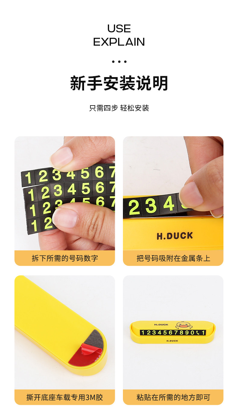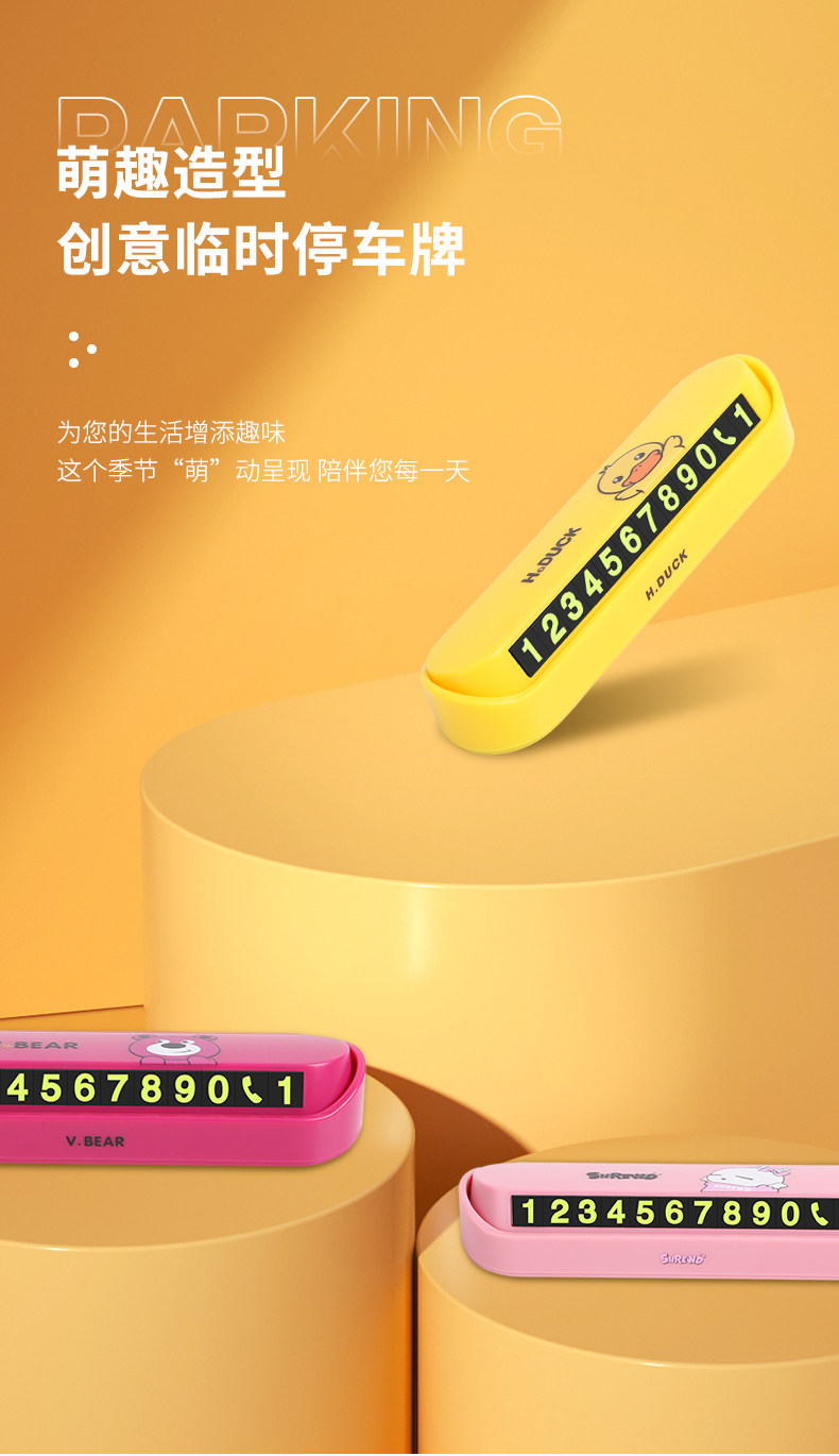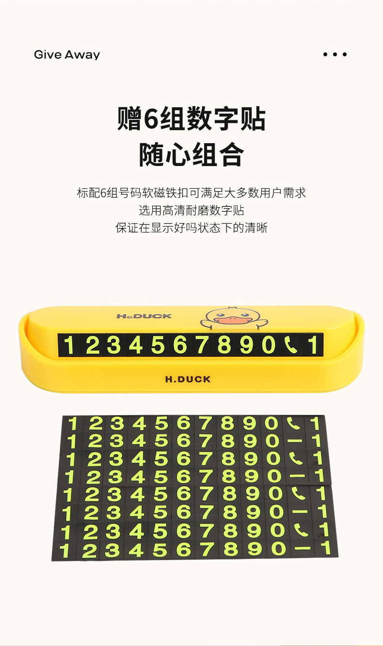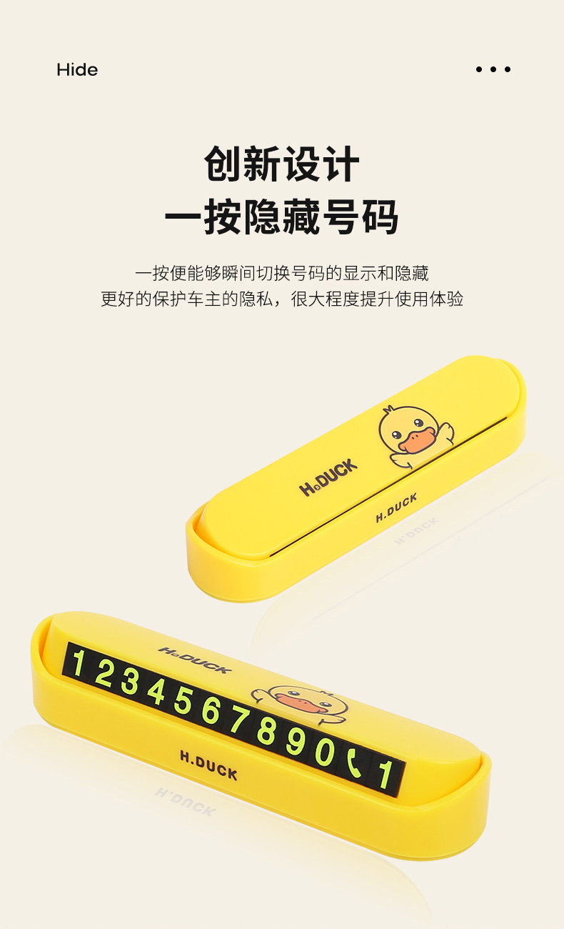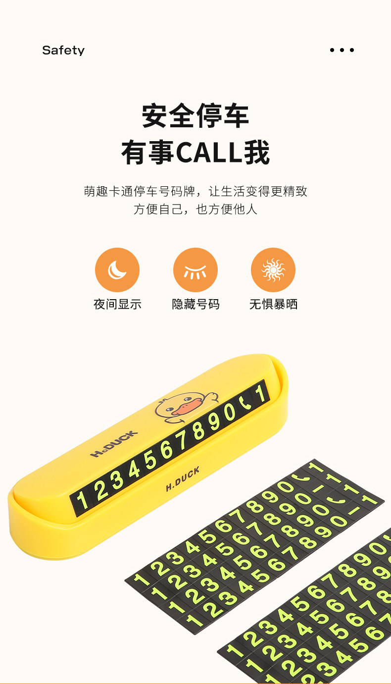 小黄鸭卡通汽车移车挪车电话牌号码数字摆件车载临时停靠车牌女士
