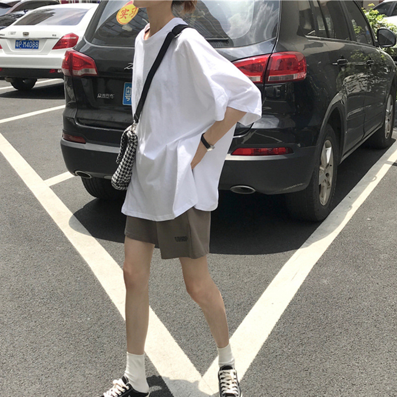 一件代发韩版双磨牛奶丝圆领纯色下摆开叉短袖t恤女2022外贸批发