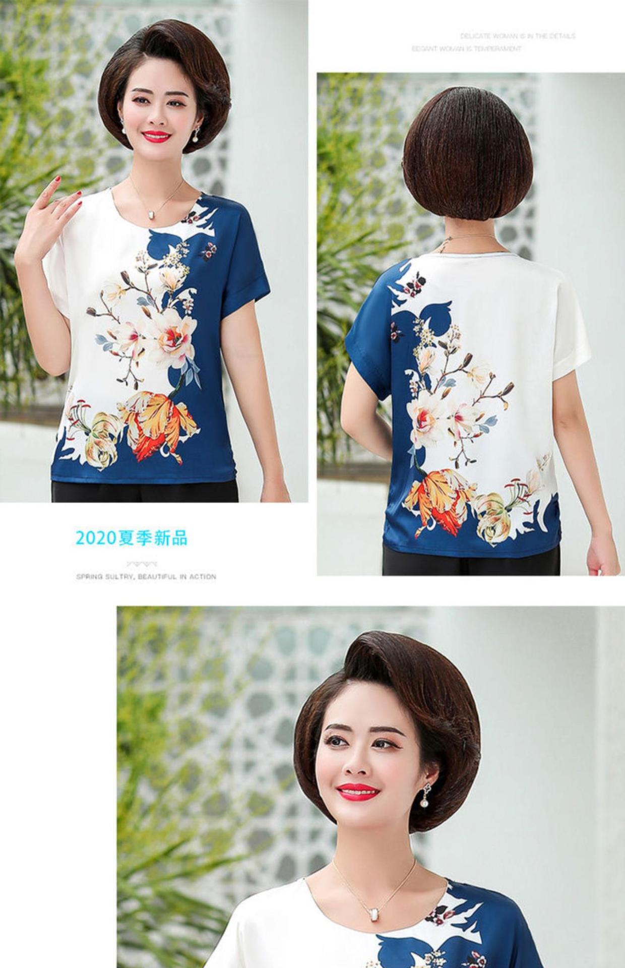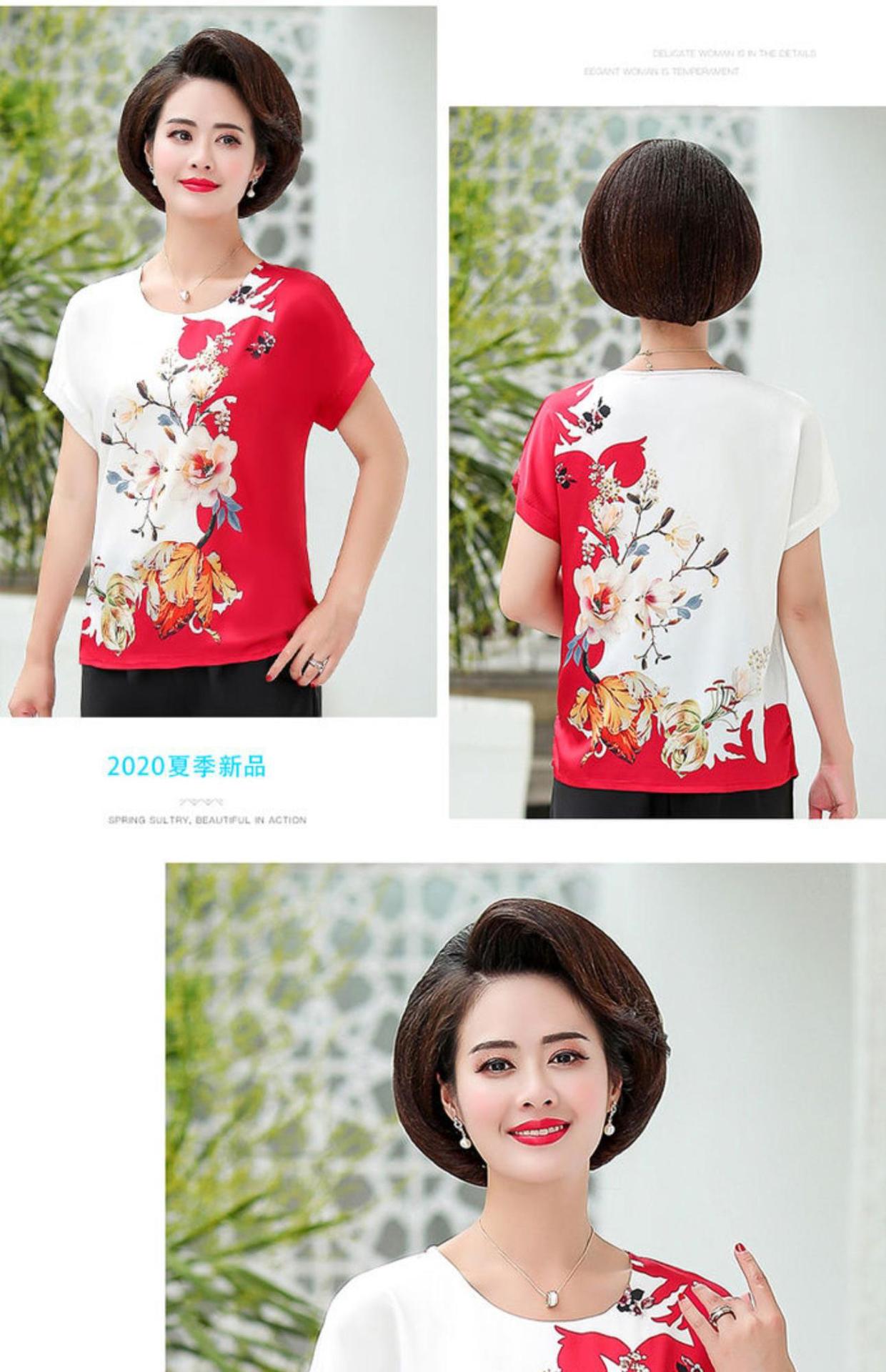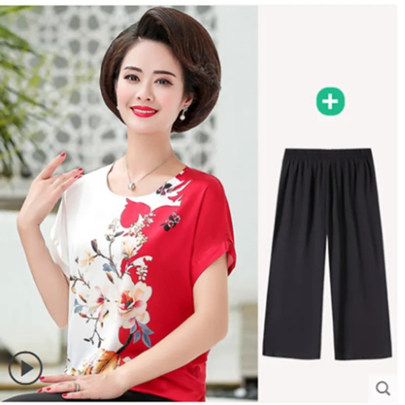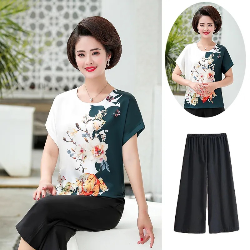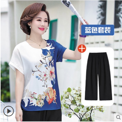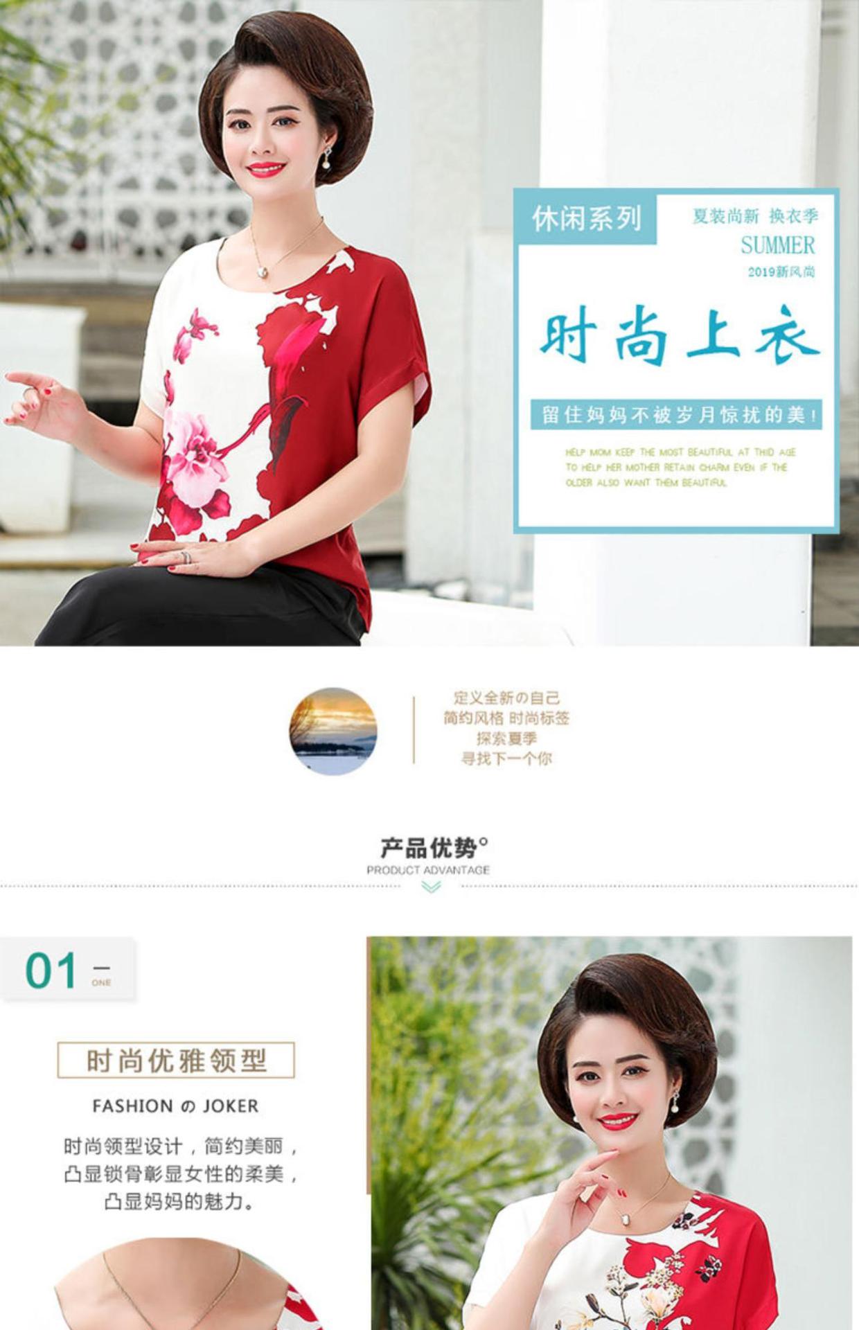 妈妈装夏装短袖两件套装2022新款中年女装减龄上衣中老年人洋小衫