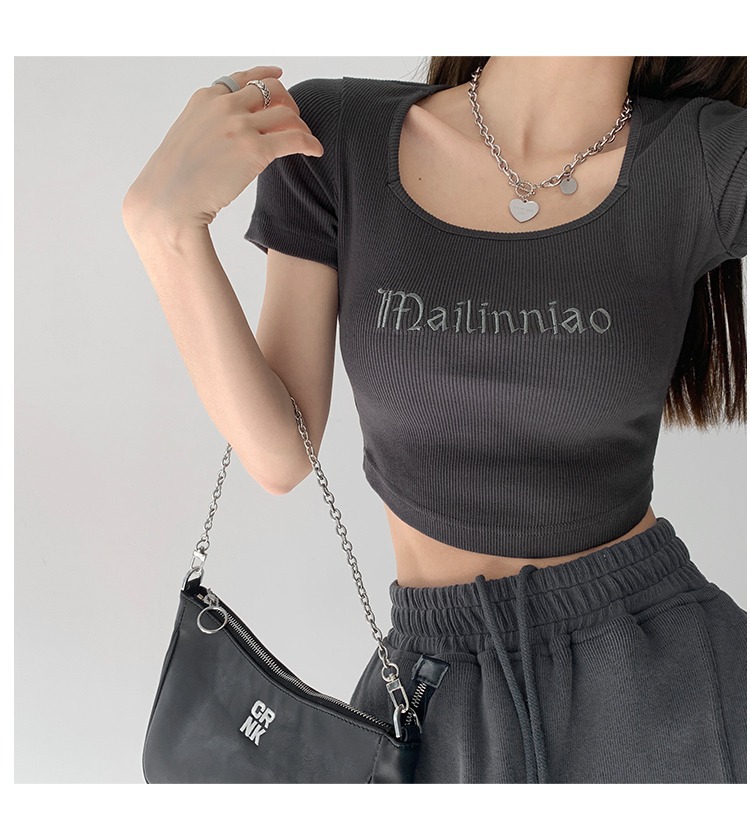 一件代发2022螺纹布夏季短袖T恤女装韩版修身显瘦露脐上衣女批发