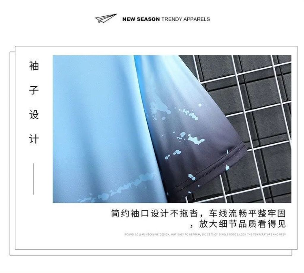 男士短袖夏季男士潮牌冰丝短袖套装ins百搭渐变色T恤