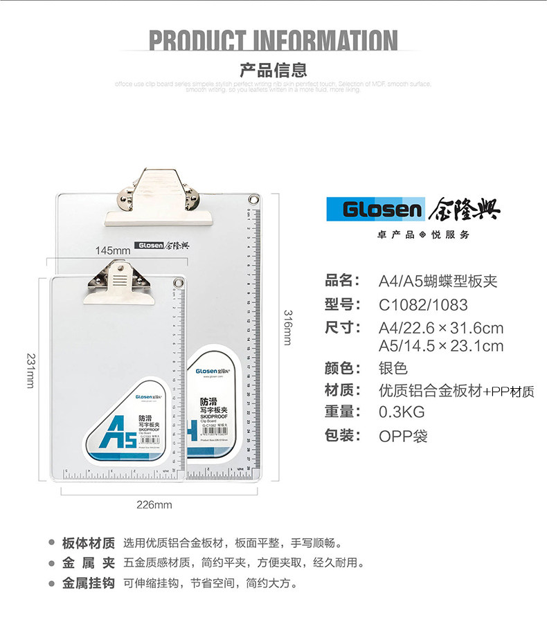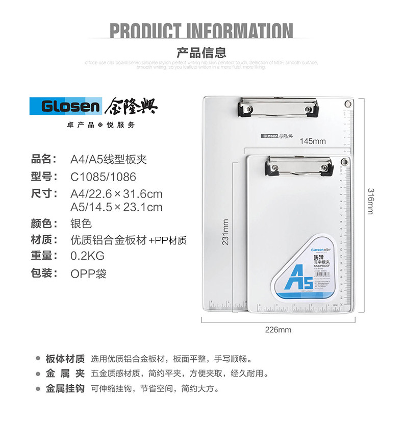A4 A5铝合金文件板夹记事写字板夹垫板办公文件夹夹本板定制LOGO