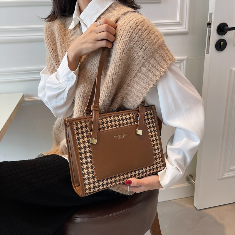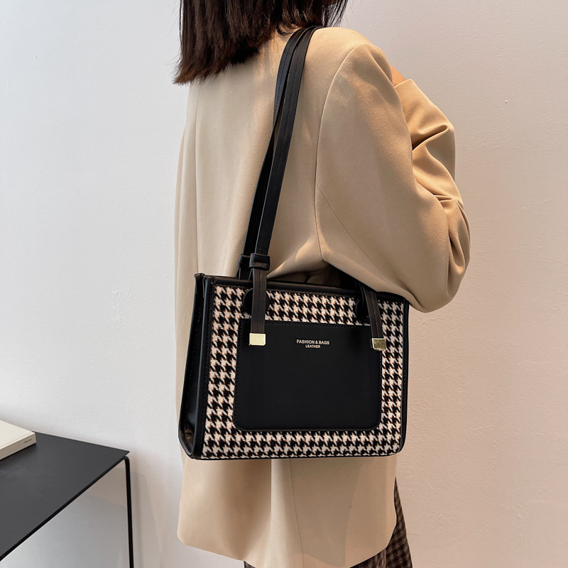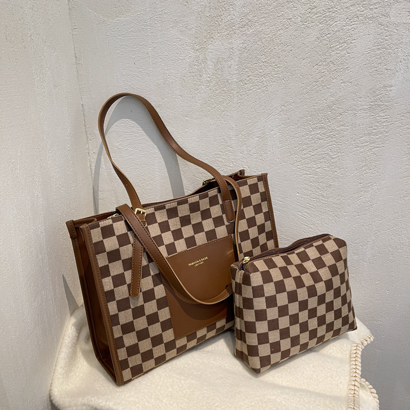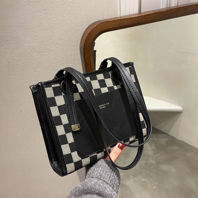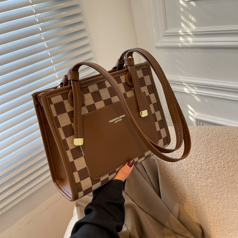 棋盘格大容量包包2022春季新款女包时尚复古通勤单肩包百搭托特包