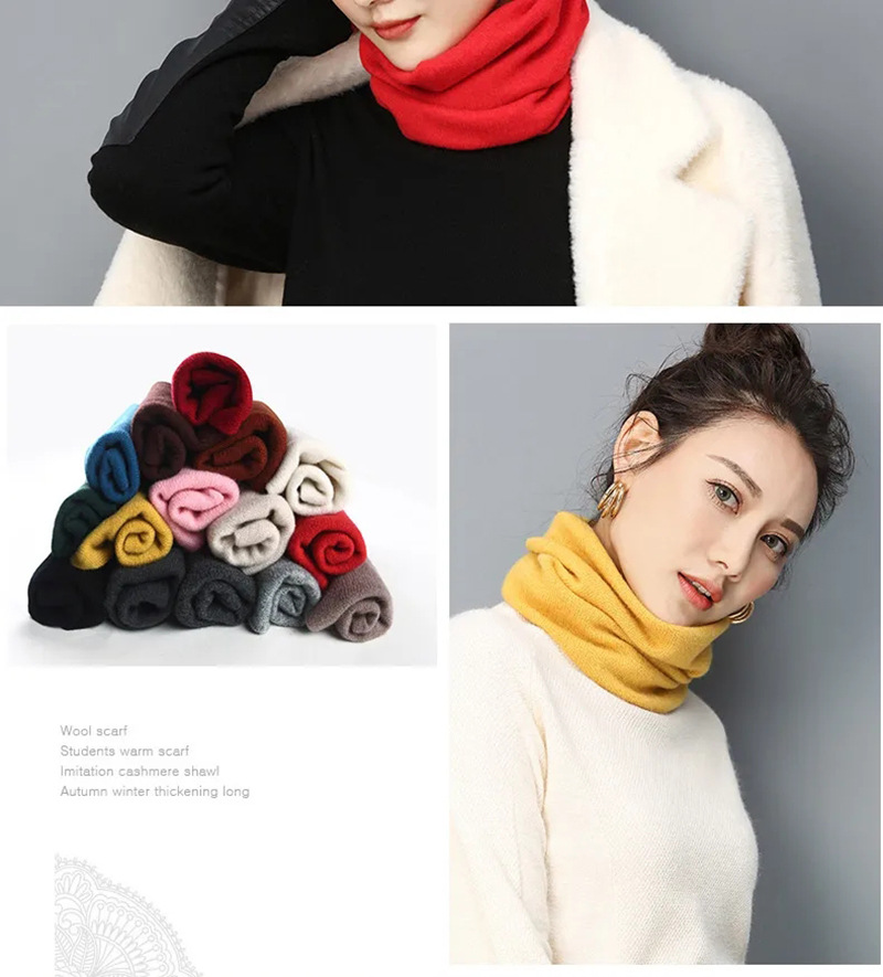 秋冬季薄款仿羊绒围脖男套头脖套女韩版百搭保暖护脖颈椎毛线围巾