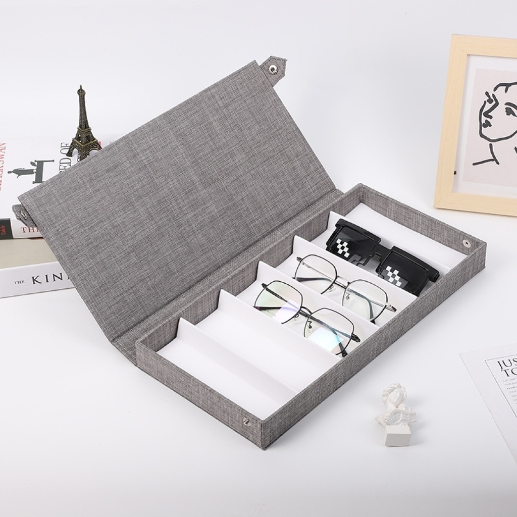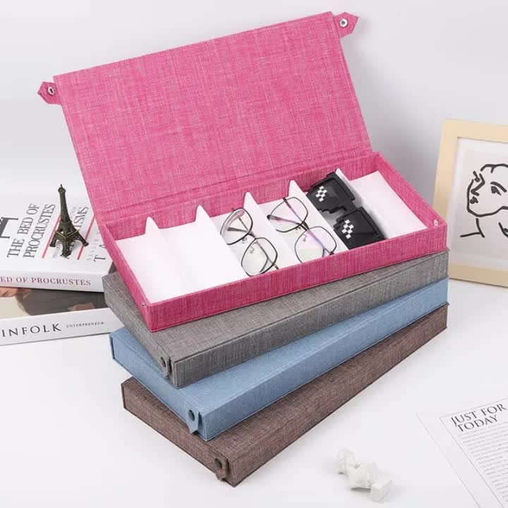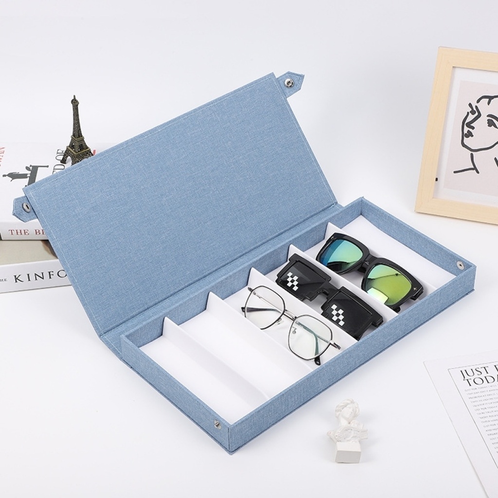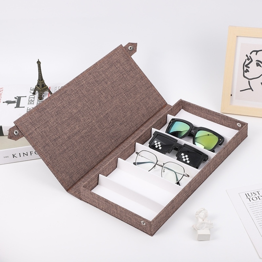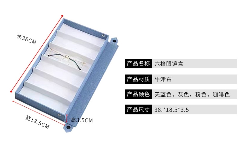 新款纯手工4色6格可收纳便携防尘眼镜展示展览盒柜台展示托盘道具